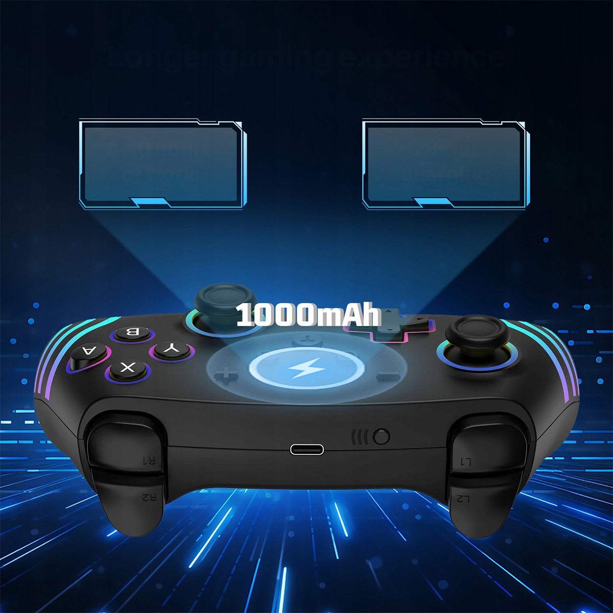 Контроллер также имеет большую способность 1000 мАч, что после полной зарядки достаточно примерно в течение 8-10 часов непрерывной игры. Джойстик автоматически входит в спящий режим после выключения основного экрана и после нажатия любой кнопки в течение более 5 минут.