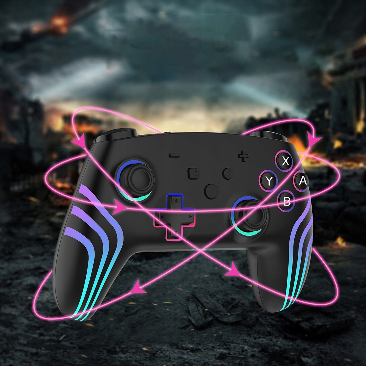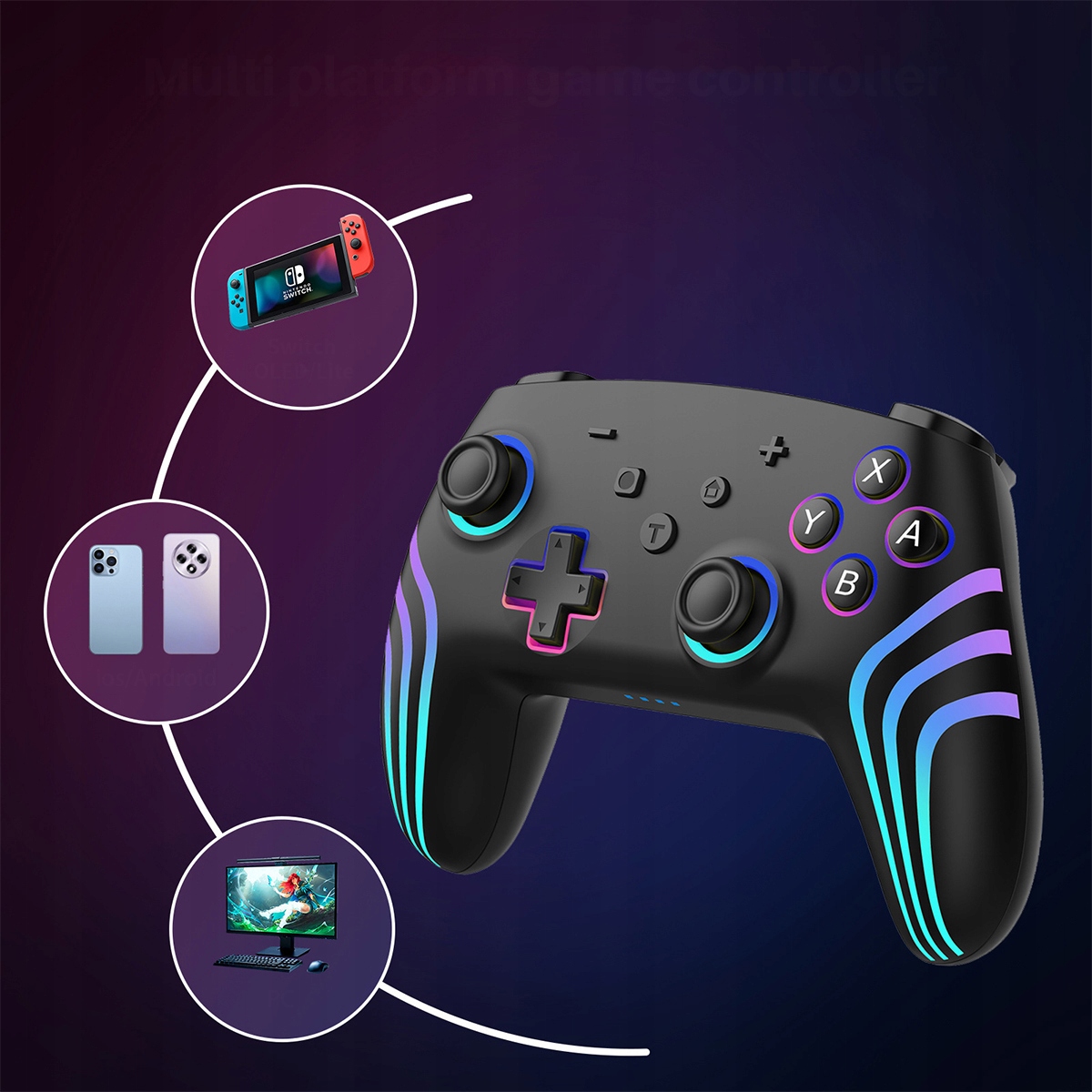 ⭐bezpistywire Pro Do Do Do Switch/Switch 2/Lite/OLED/PC, GamePad с 7-цветовым, RGB-подсветкой, изменяющим цветы/двойные вибрации/6-оси по гироскопе/турбо, эргономично, точный джойстик (черный) ⭐