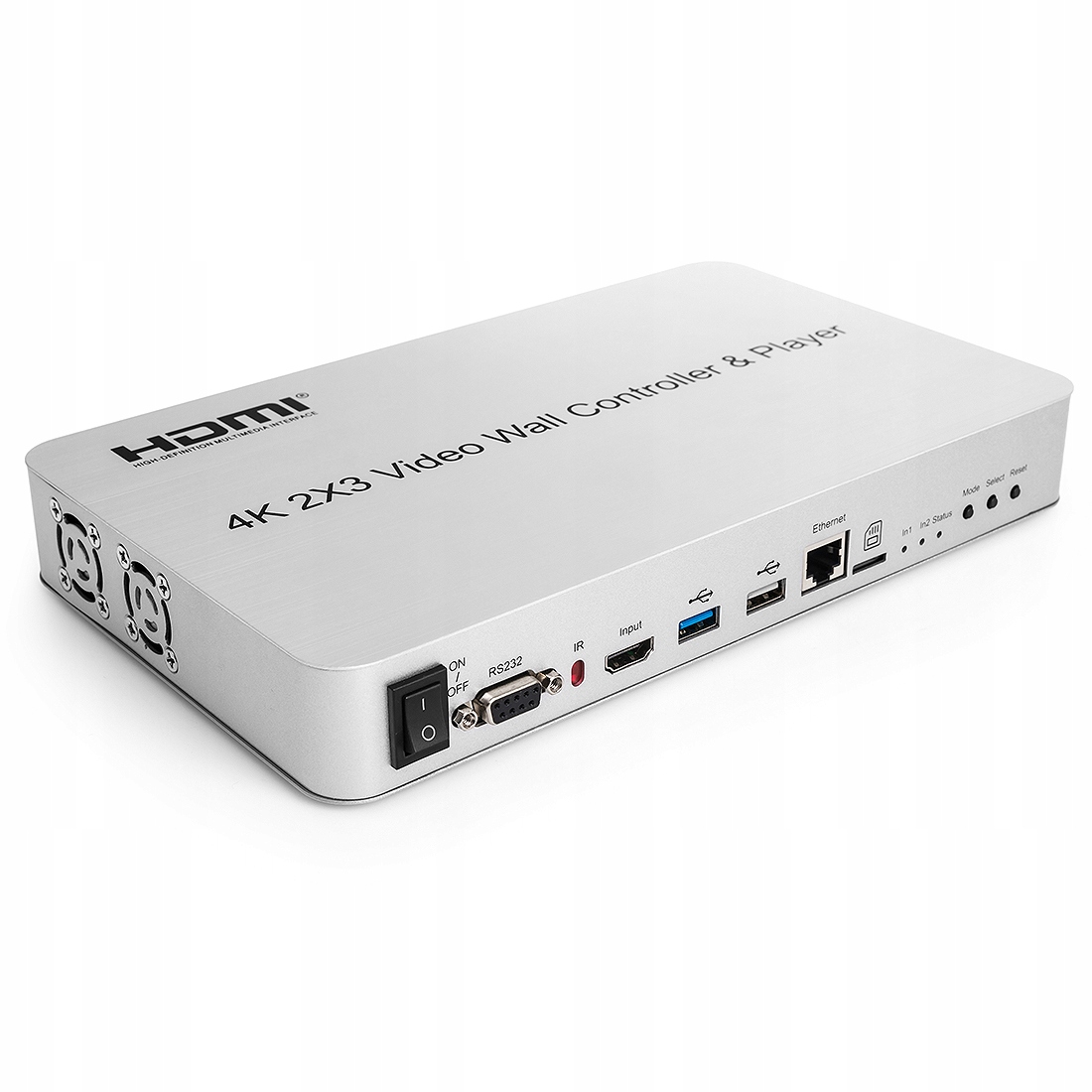 Настенный контроллер 2x3, позволяющий передавать видеосигнал с порта HDMI и отображать его на HDMI-приемниках в различных конфигурациях. Позволяет создать большое и динамичное изображение, создав стену из 6 приёмников. Устройство поддерживает кабели длиной до 5 м на входе и выходе и разрешение 4K при 30 Гц.