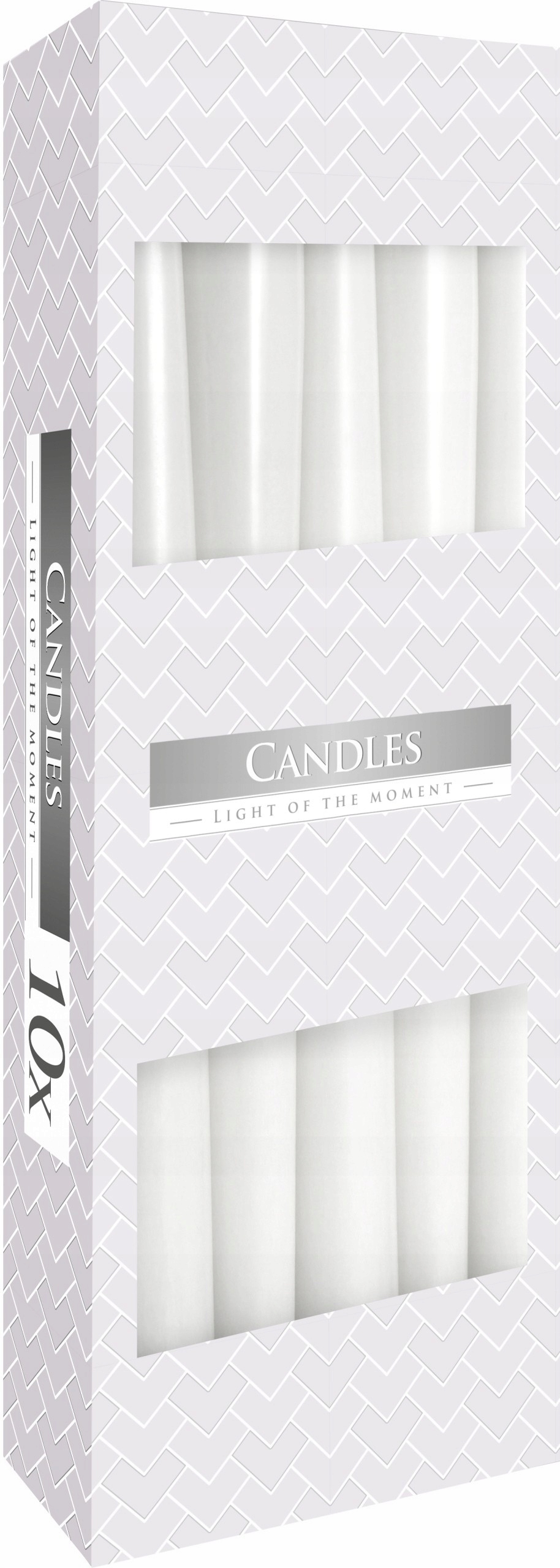 Свеча декоративная настольная конусной формы, белая, без капель, без запаха б> б> высотой 24,5 см, диаметром 2,3 см и временем горения до 7 часов БИСПОЛ. Упакованы по 10 штук в сборную упаковку.