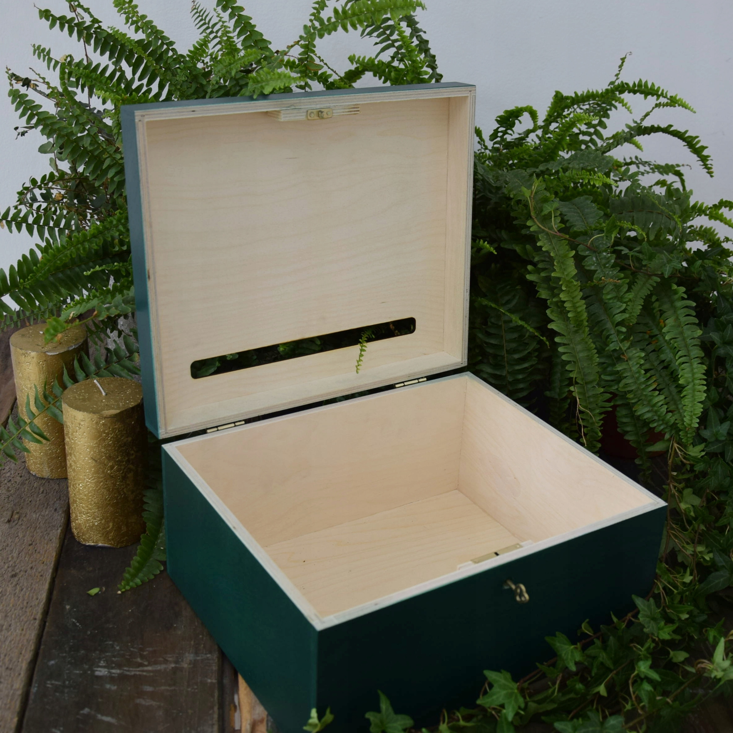 На нашем аукционе мы предлагаем красивую коробку в цвете БУТЫЛОЧНО-ЗЕЛЕНЫЙ.