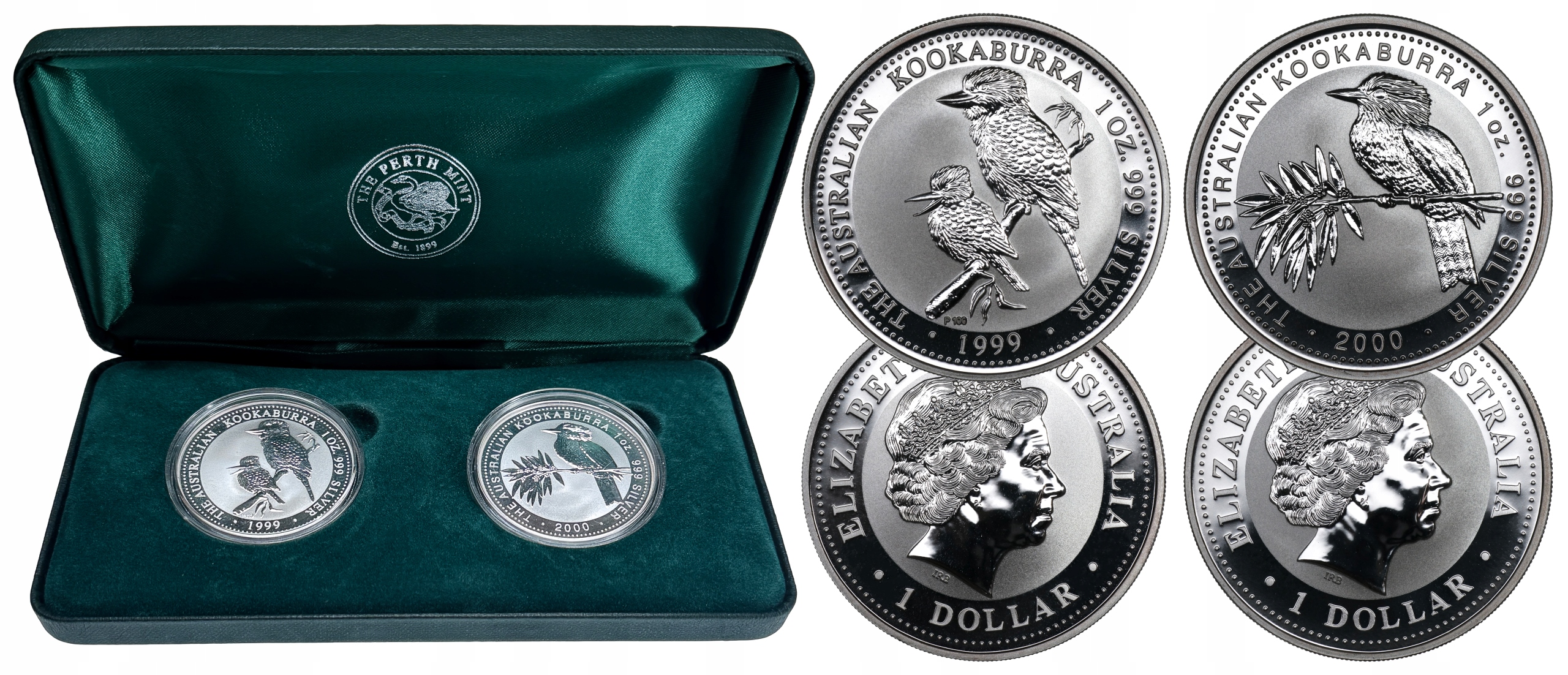 Kookaburra 1999 і 2000 - сет з двох монет в оригінальному футлярі The Perth Mint