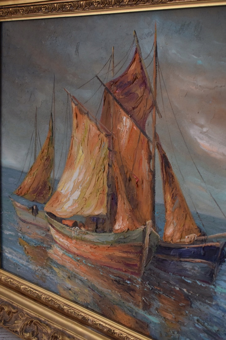 Корабли в море - корабль - Махастеры - кубизм нефть - золотая рама