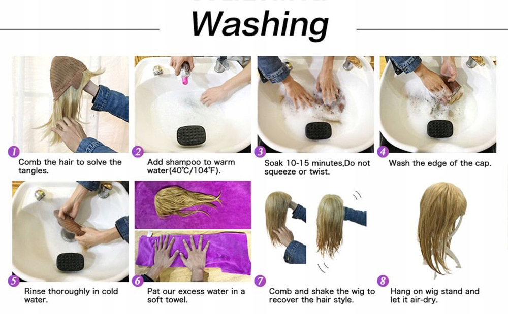 Мы рекомендуем использовать средства по уходу за волосами, чтобы парик оставался в целости и сохранности. хорошее состояние надолго.
