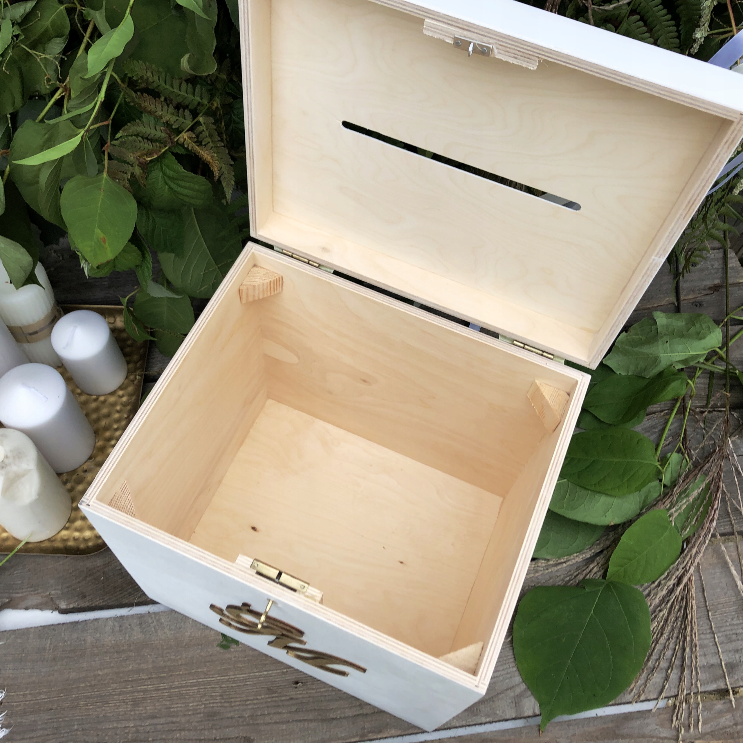 На нашем аукционе мы предлагаем красивую белую коробку для обручальных колец и коробку-конверт.