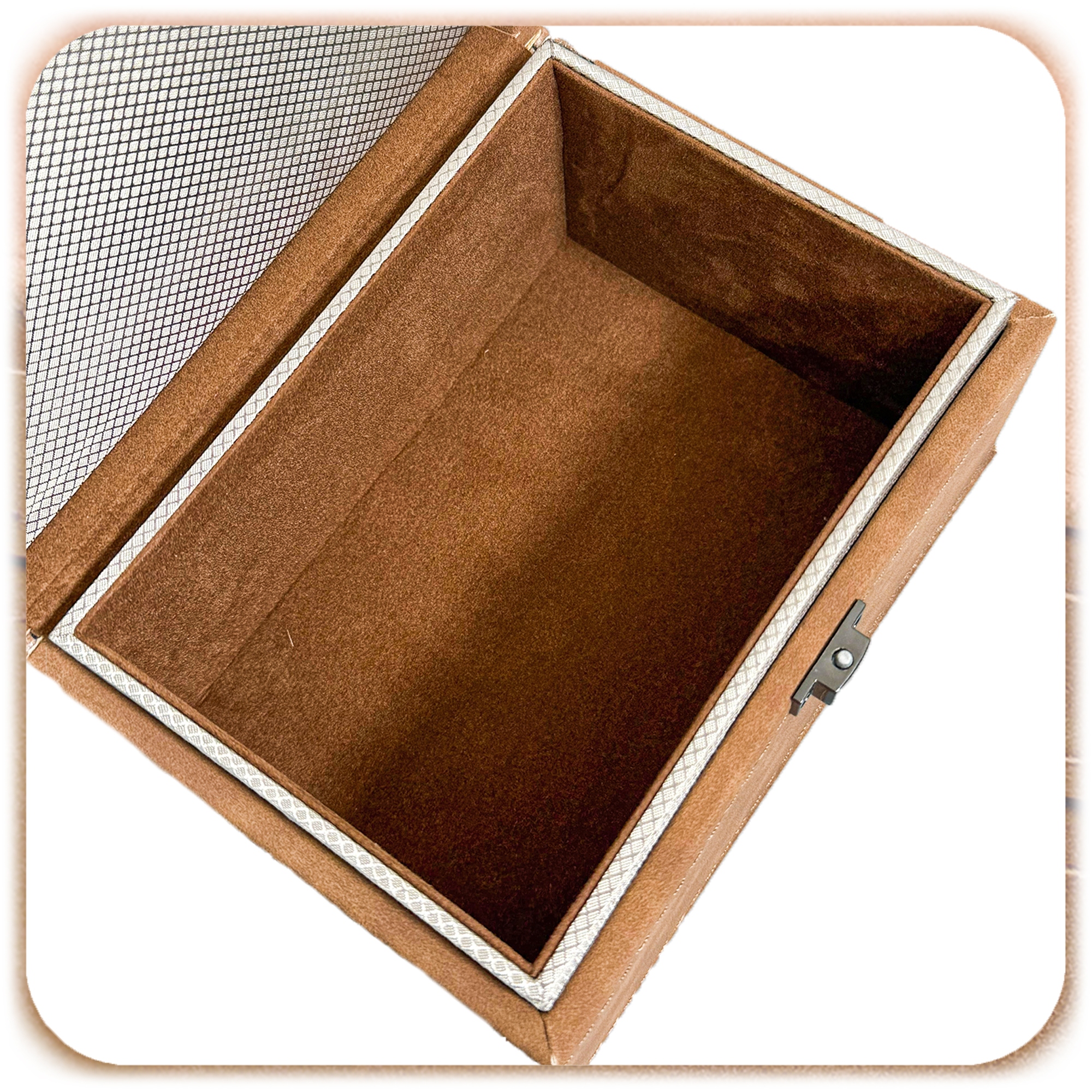 ✔ Стильная замша на открытом воздухе и мягкая ткань внутри придает коробке уникальный вид.