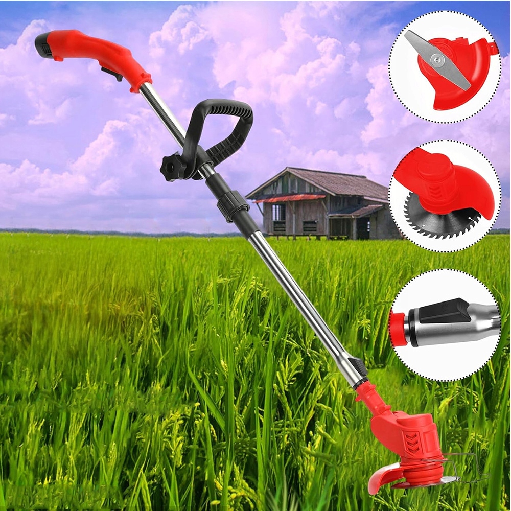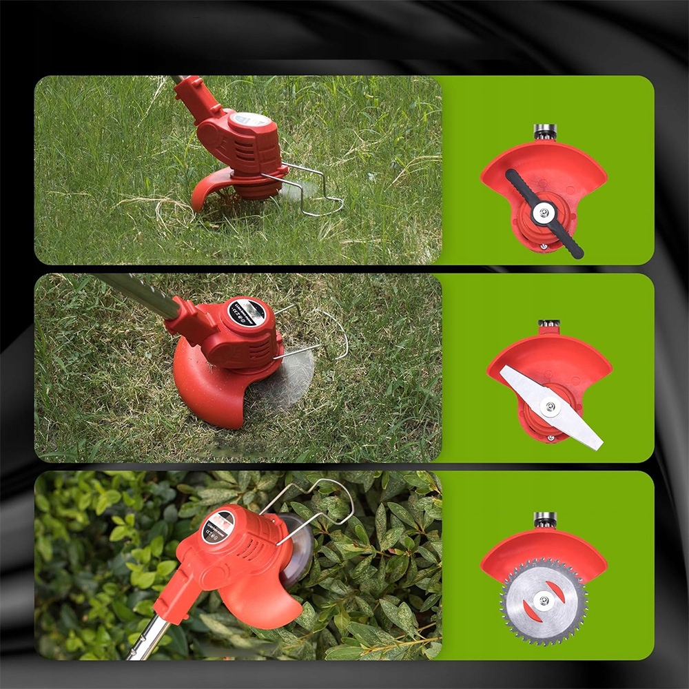 Электрическая аккумуляторная установка с 3 типами лопастей, линия рыбалки для аккумулятора для обрезки мягких сорняков и режущих краев, лопасть Matel может удалять сорняки и живые изделия, металлическое пилочное лезвие может разрезать кустарники и толстые стволы дерева. Сорняки, подходящие для газона, сад, различные сценарии