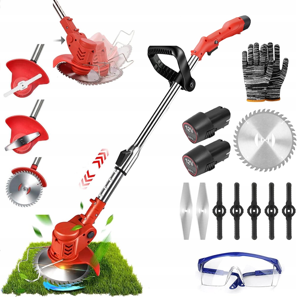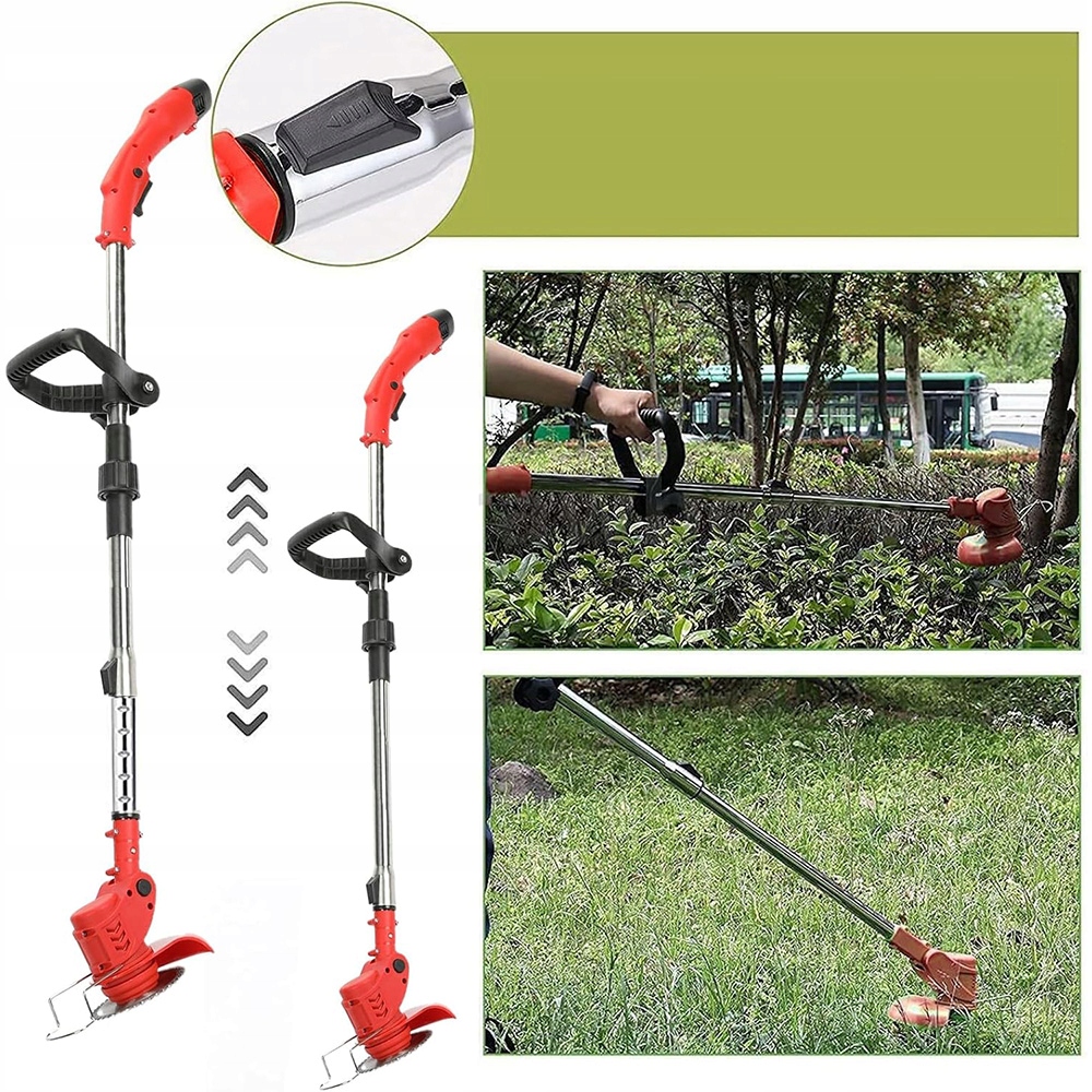 - -nasza Косилка использует мощный медный двигатель, скорость без нагрузки на 18 000 об/мин оснащена литий-ионной батареей 12 В, 2 батареи используются непрерывно Батарея может быть свободно регулироваться в зависимости от ваших потребностей. Регулируемый телескопический стержень 30 см (электрический кузнечик может отрегулировать общую длину: 90 ~ 120 см). Рабочая высота может быть свободно регулируется в зависимости от ваших потребностей, уменьшая давление на талию. Металлическое лезвие из нержавеющей стали подходит для косителя газона, сорняков и небольших кустарников. Цель марганцевого стального диска подходит для почивания более толстой травы, кустарников и ветвей. Клинок острый и сильный для быстрых порезов. Угол головки может быть отрегулирован на 90 градусов, что позволяет пользователям регулировать угол резки и разрезать в плотных местах, например, под рабочим таблицей. рука. - водонепроницаемое покрытие, благодаря которой дождевая вода или роса не проникают во время использования. (Примечание: не размещайте косилку непосредственно в воду.)