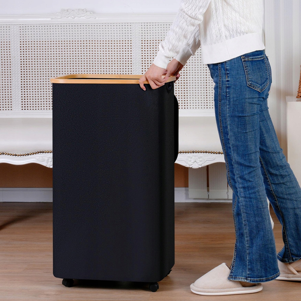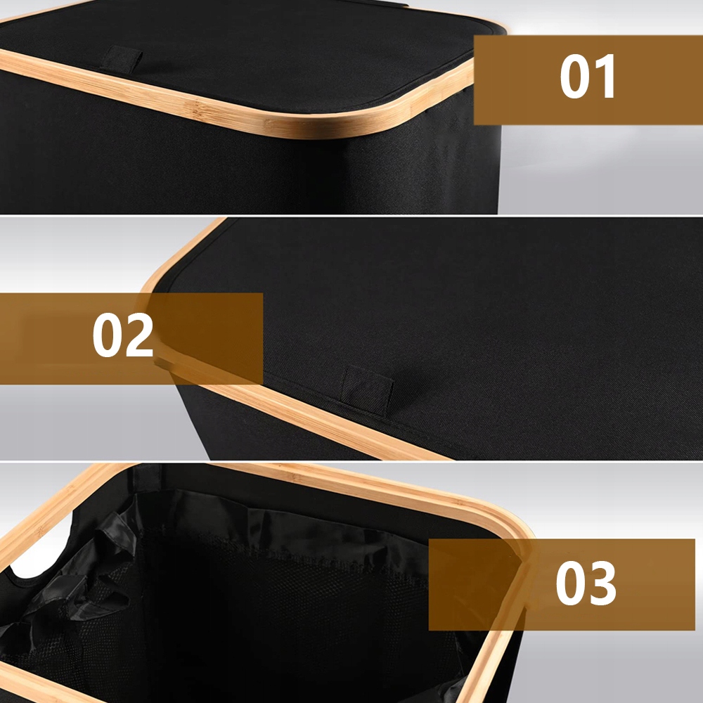 - Черная большая крышка корзины для грязной одежды. вместительная бамбуковая ткань.