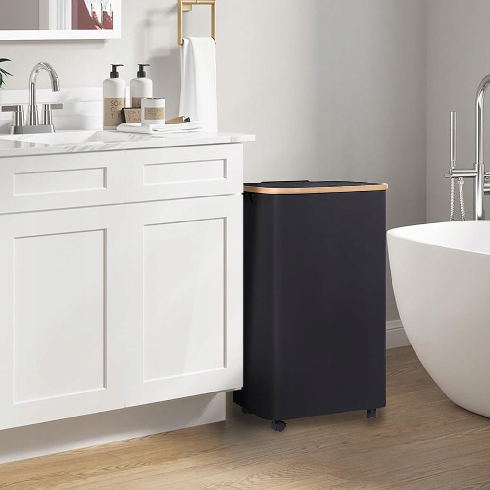 Корзина для белья имеет инновационный стиль и идеально подходит для вашей комнаты. Корзина для белья имеет узкую высоту и оснащена прижимными колесами. Его можно разместить в ограниченных пространствах, таких как спальни, прачечные и ванные комнаты.