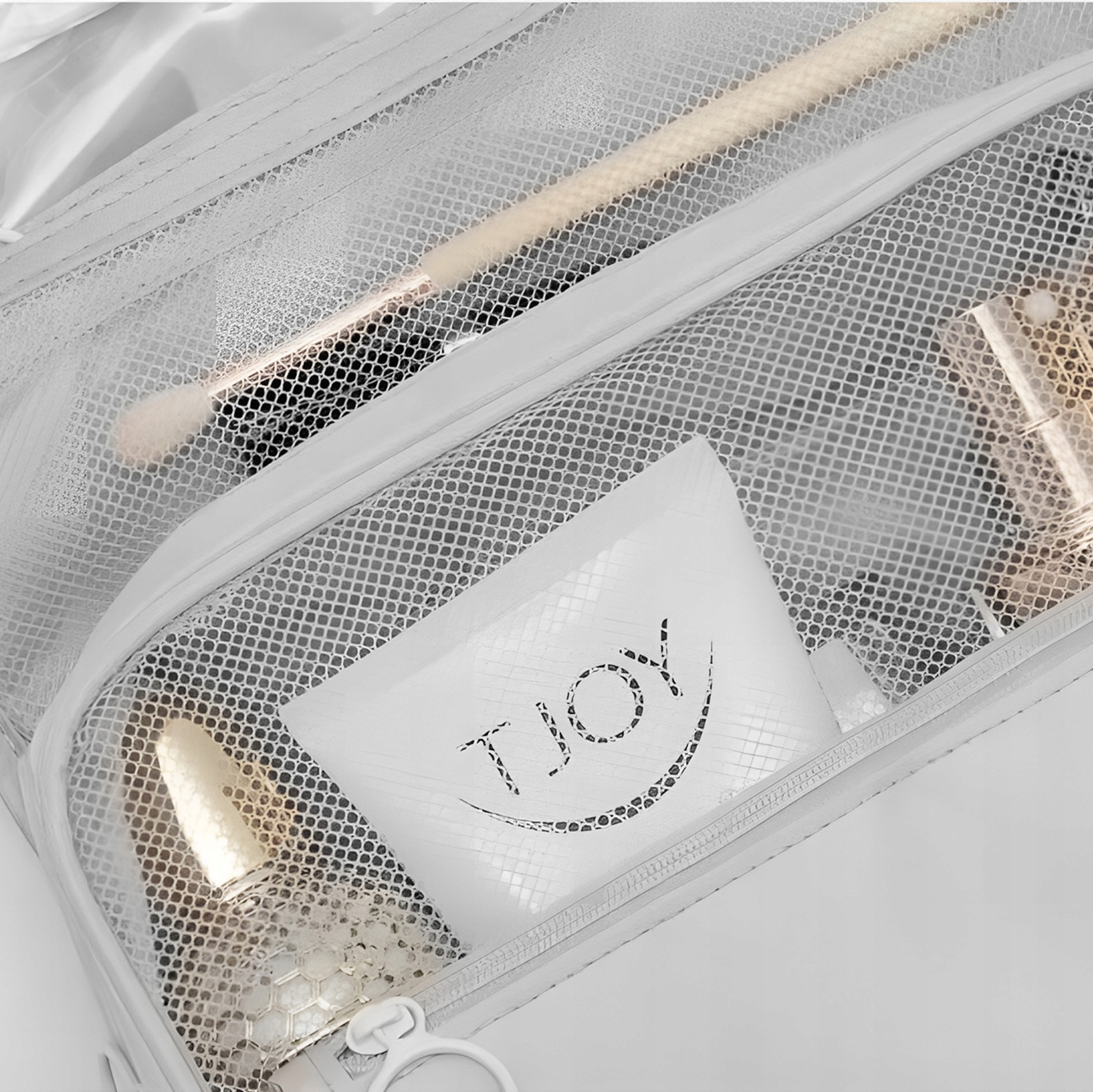 ✔️ Вместительные отделения и сетчатые ручки – облегчают организацию и быстрый доступ к косметике.