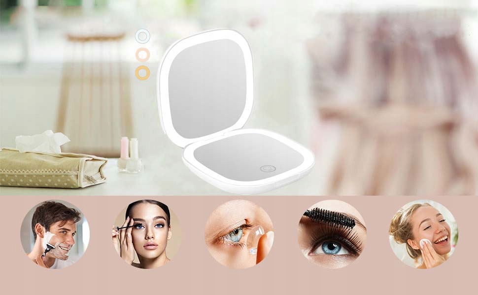 💍 💍 💍 usb. Это портативное зеркало также имеет длинную батарею. Зеркало может быть заряжено и оснащено USB -зарядным кабелем, благодаря которому зеркало заряжено и готово к использованию.