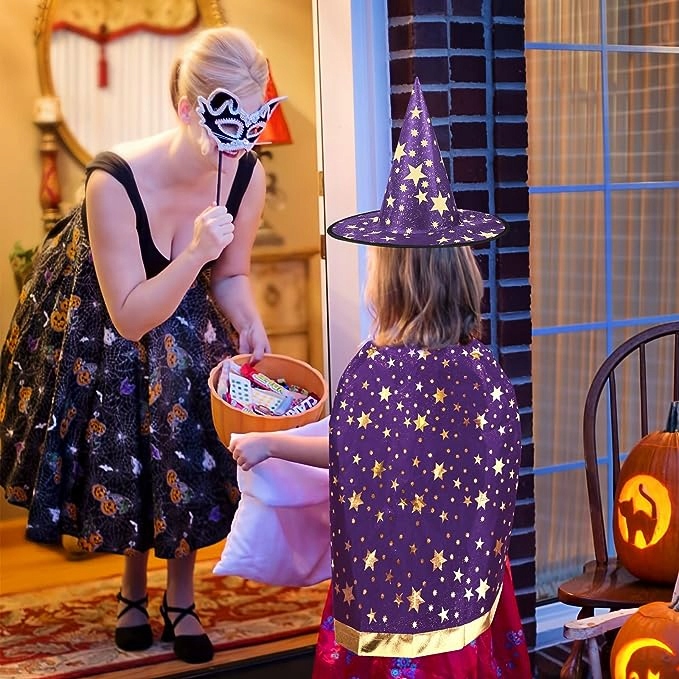 Фантастический костюм волшебника — в комплект входит шляпа и накидка, завязанная на шее. Красивые звезды выглядят фантастически как днем, так и вечером. Идеальный наряд для различного рода мероприятий, Андреевского дня, Хэллоуина, карнавальных балов и т.п.