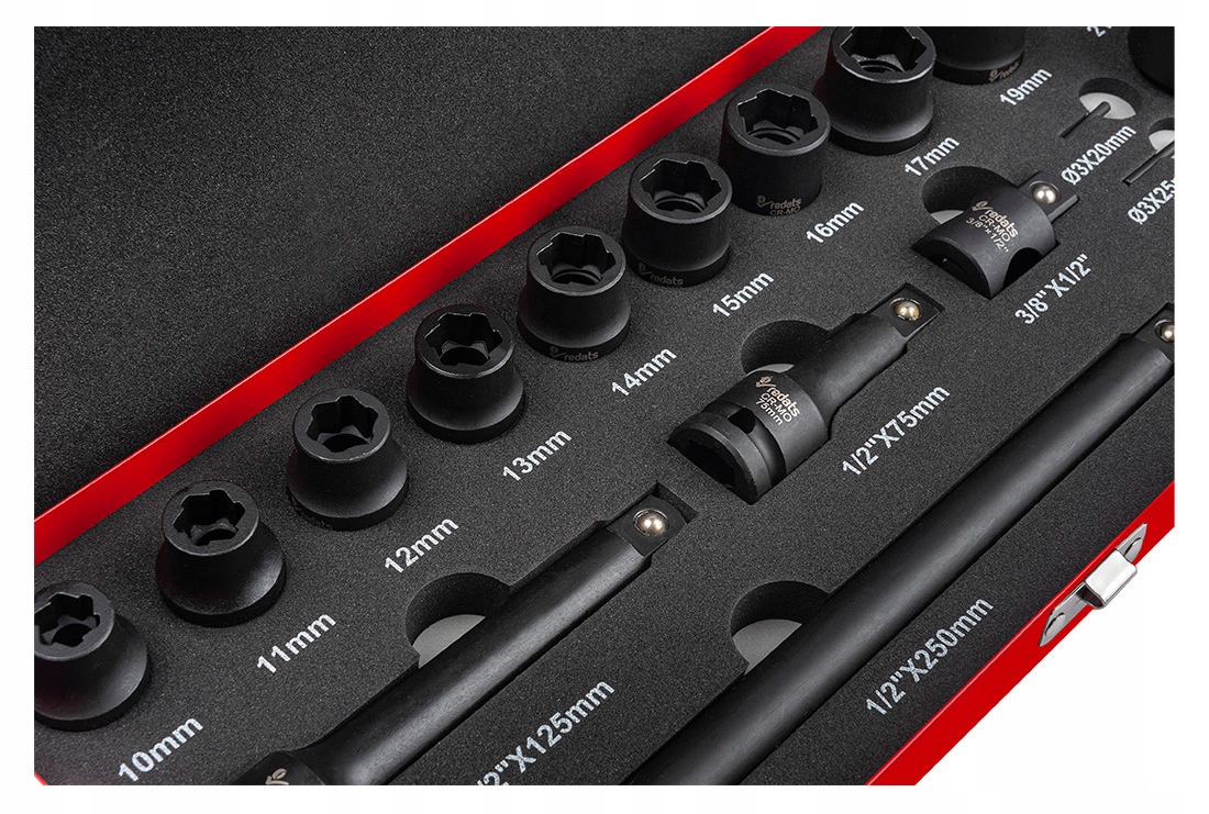 Розетки и удлинители изготовлены из высококачественной хромомолибденовой стали. Это материал высочайшего качества, устойчивый к деформации и коррозии – его можно использовать долгие годы без каких-либо опасений!