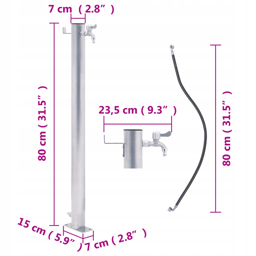 Кран садовый на круглом столбе, 80 см, нержавеющая сталь