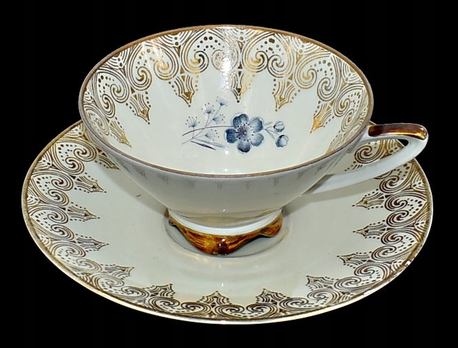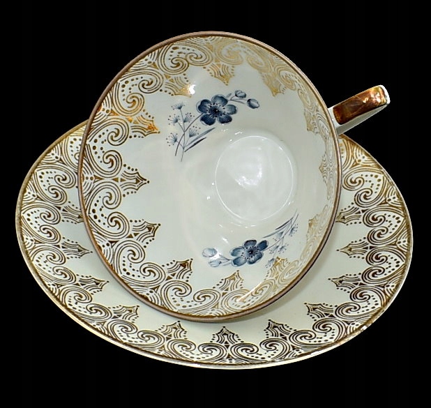 Красивая старая чашка - золотая позолота - голубые цветы