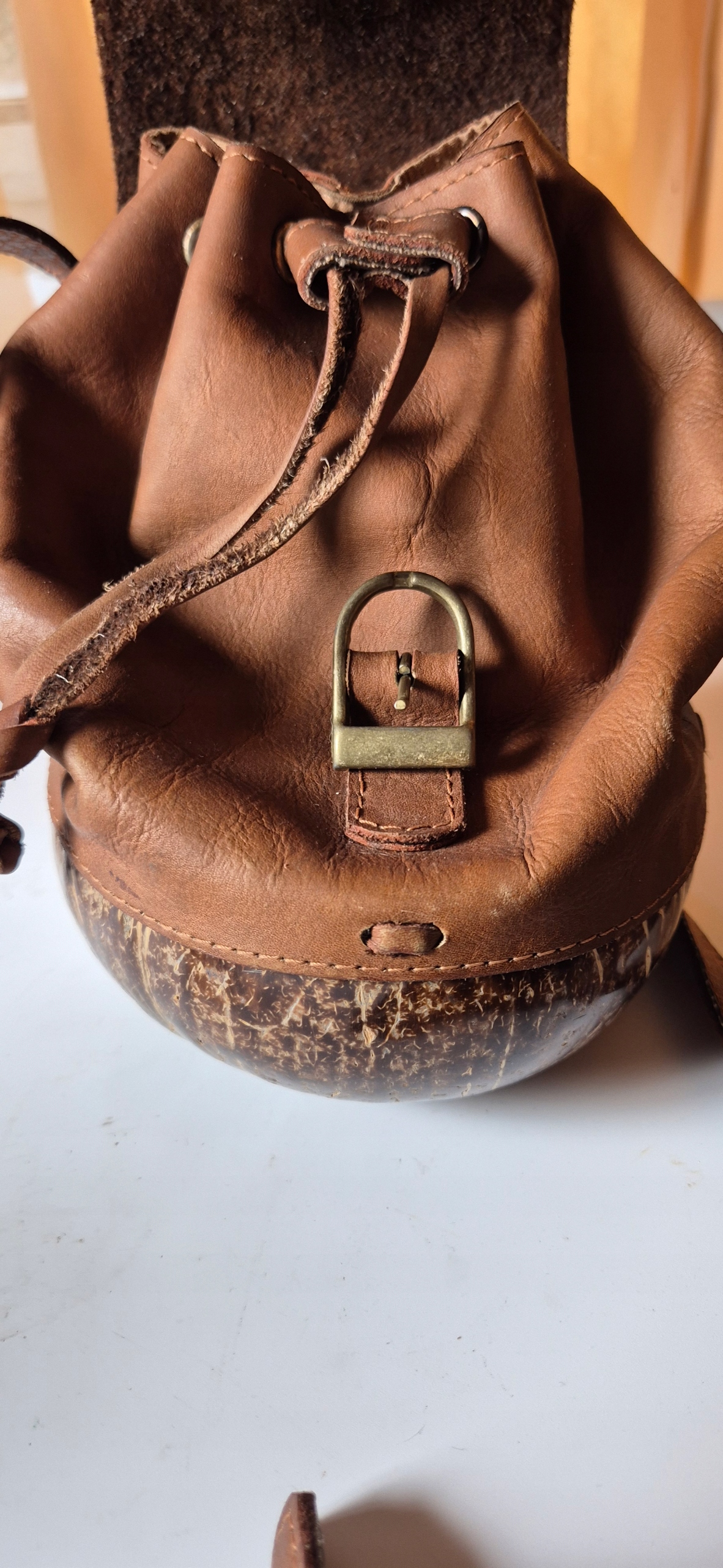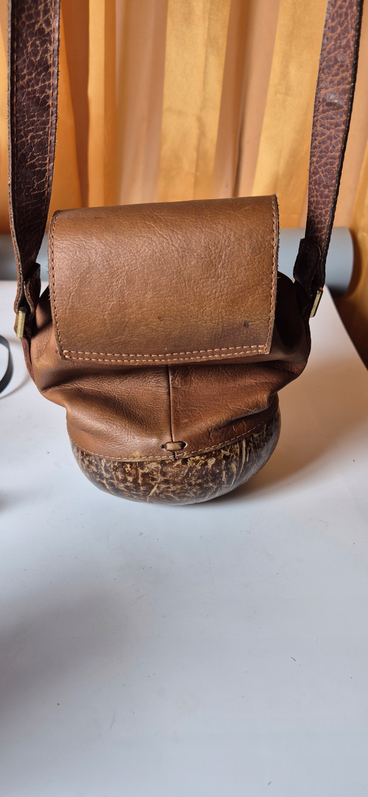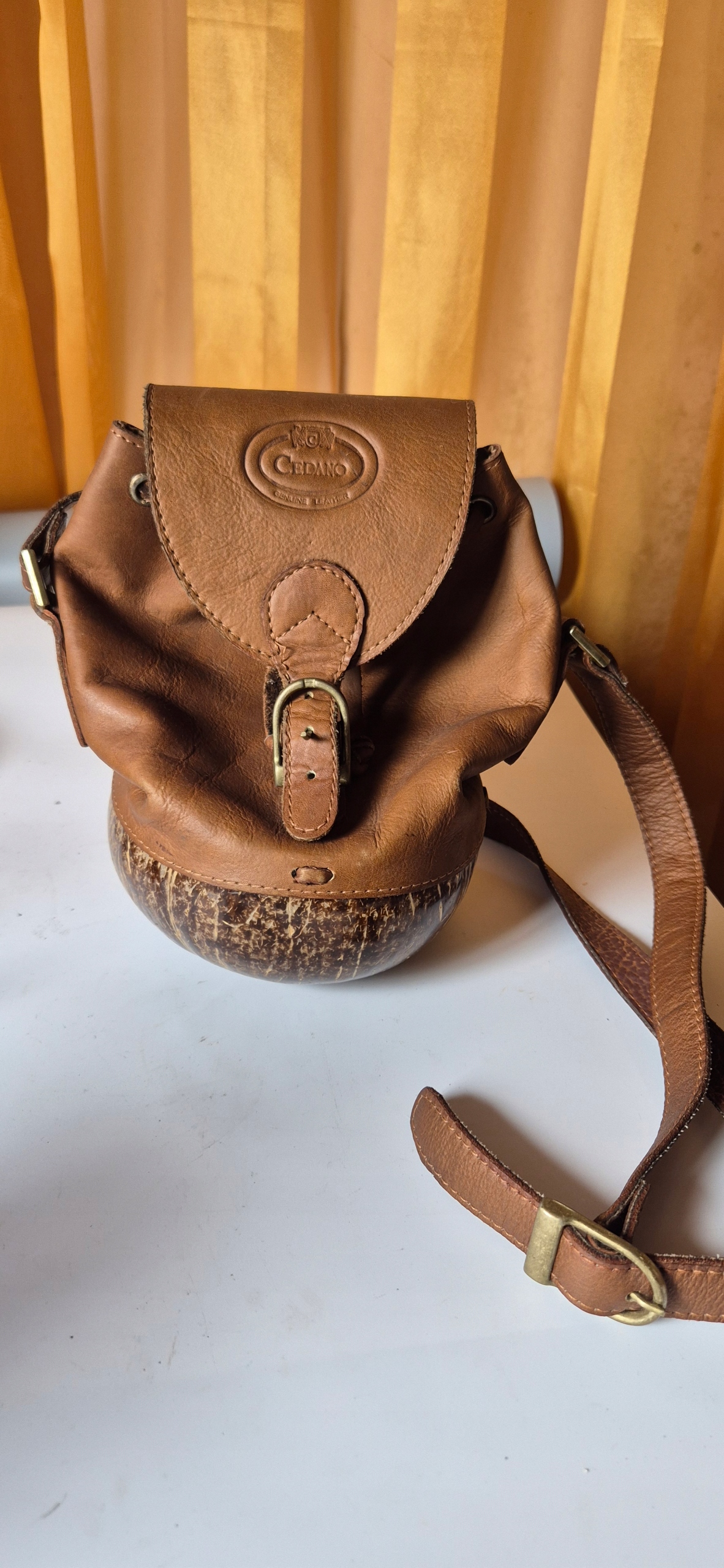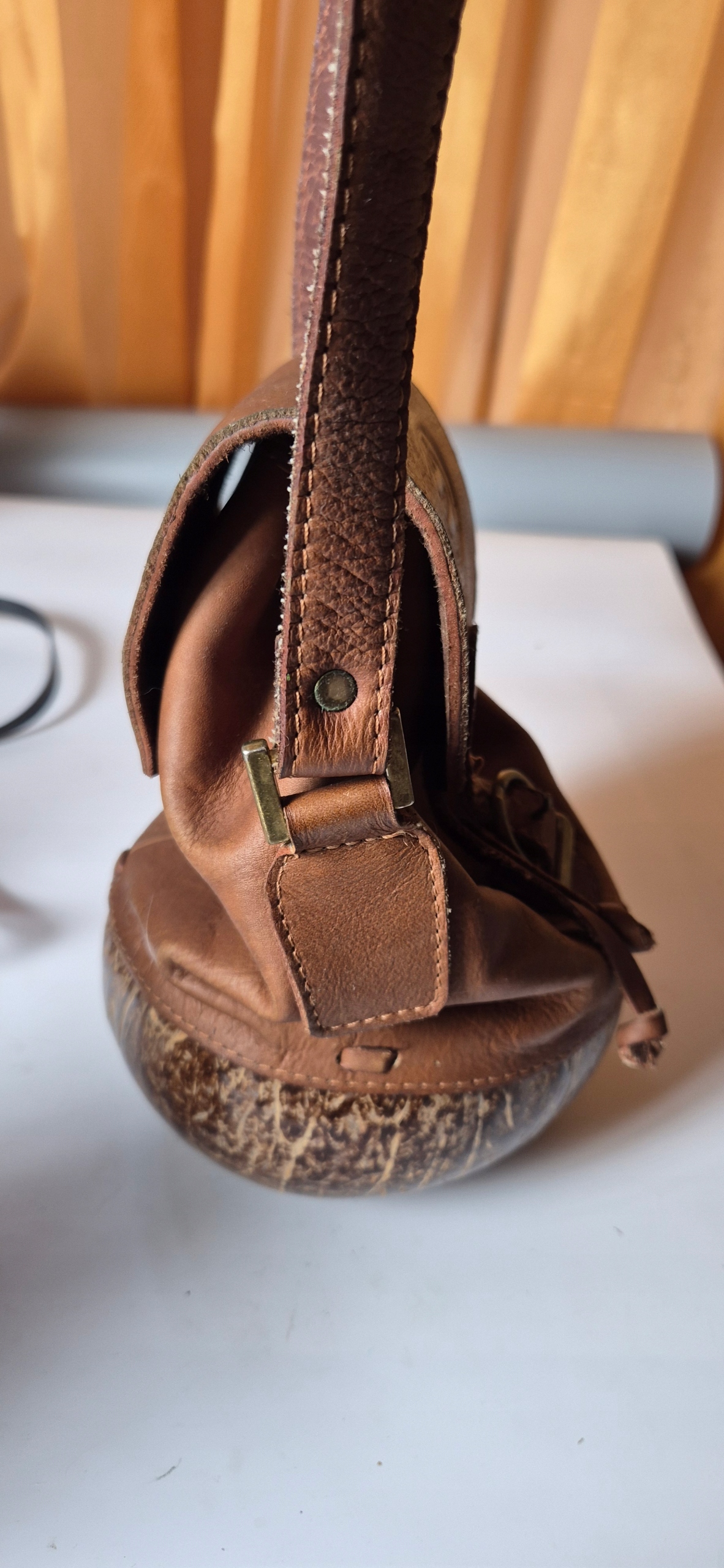 Красивая старая кожаная сумочка подлинная кожаная винтаж с кокосовым орехом