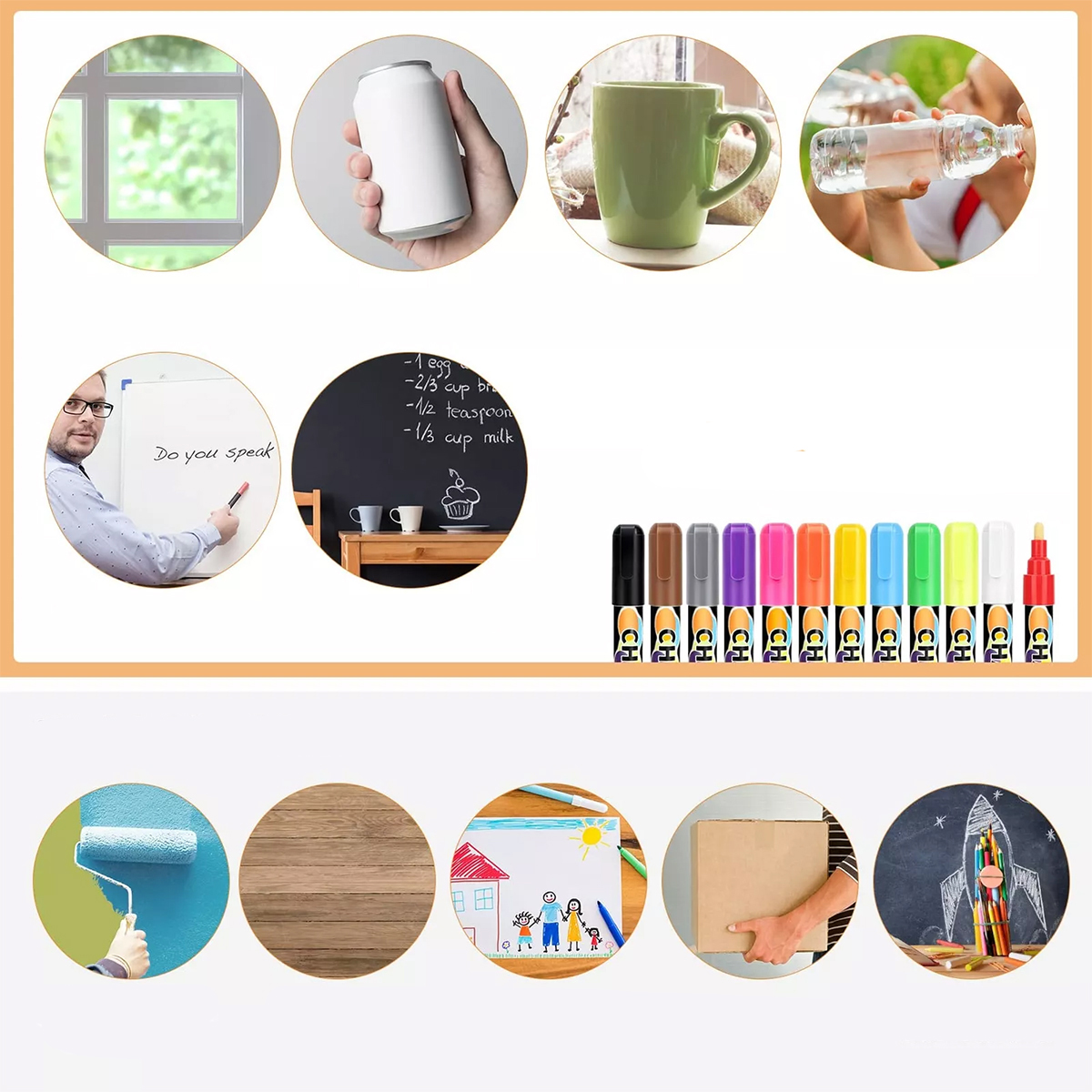 Подходит для использования практически на всех непористых поверхностях. поверхноститакие как классные доски, стекло, контактная бумага, наклейки, белые доски, пластик, металл, карточки-меню, окна автомобилей, глянцевые доски, зеркала и многие другие.