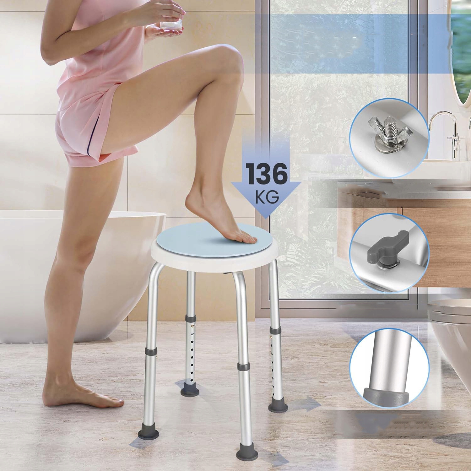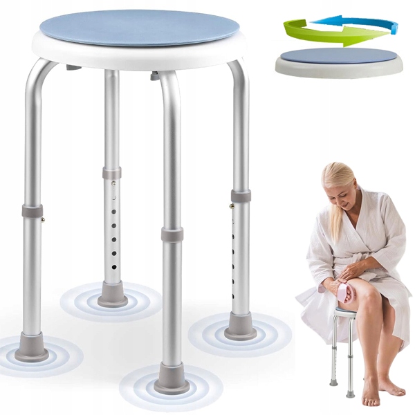 Стул для душа в помещении, поворотное сиденье для душа на 360 градусов, 8 положений, регулируемая высота 36-52 см, для пожилых людей, пожилых людей, беременных