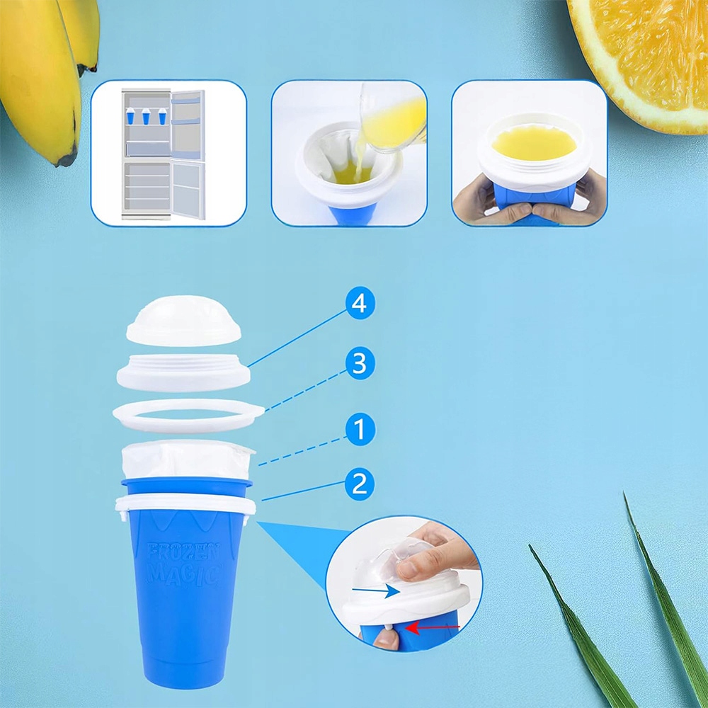 🧊- Легко в использовании, заморозите чашку в течение 5-6 часов, залейте охлажденным напитком, накрыть крышкой, сжать на 3-4 минуты, готово.