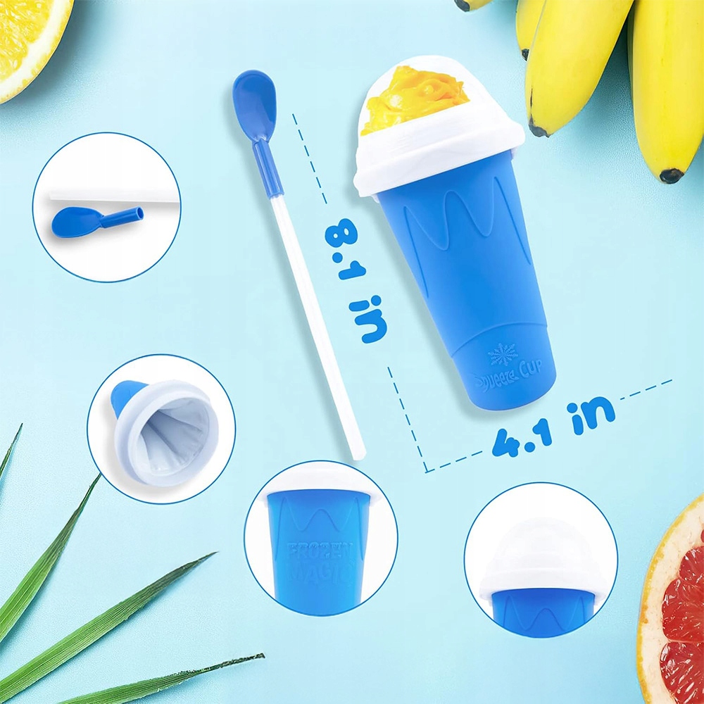 Наша кружка смузи изготовлена из высококачественного силикона, который является легким, водонепроницаемым, съемным, промытым и многоразовым. Он использует безопасные материалы для еды, чтобы гарантировать, что вы и ваша семья могут есть, конечно, есть. Это удобный и экологически чистый выбор для домашних замороженных десертов.