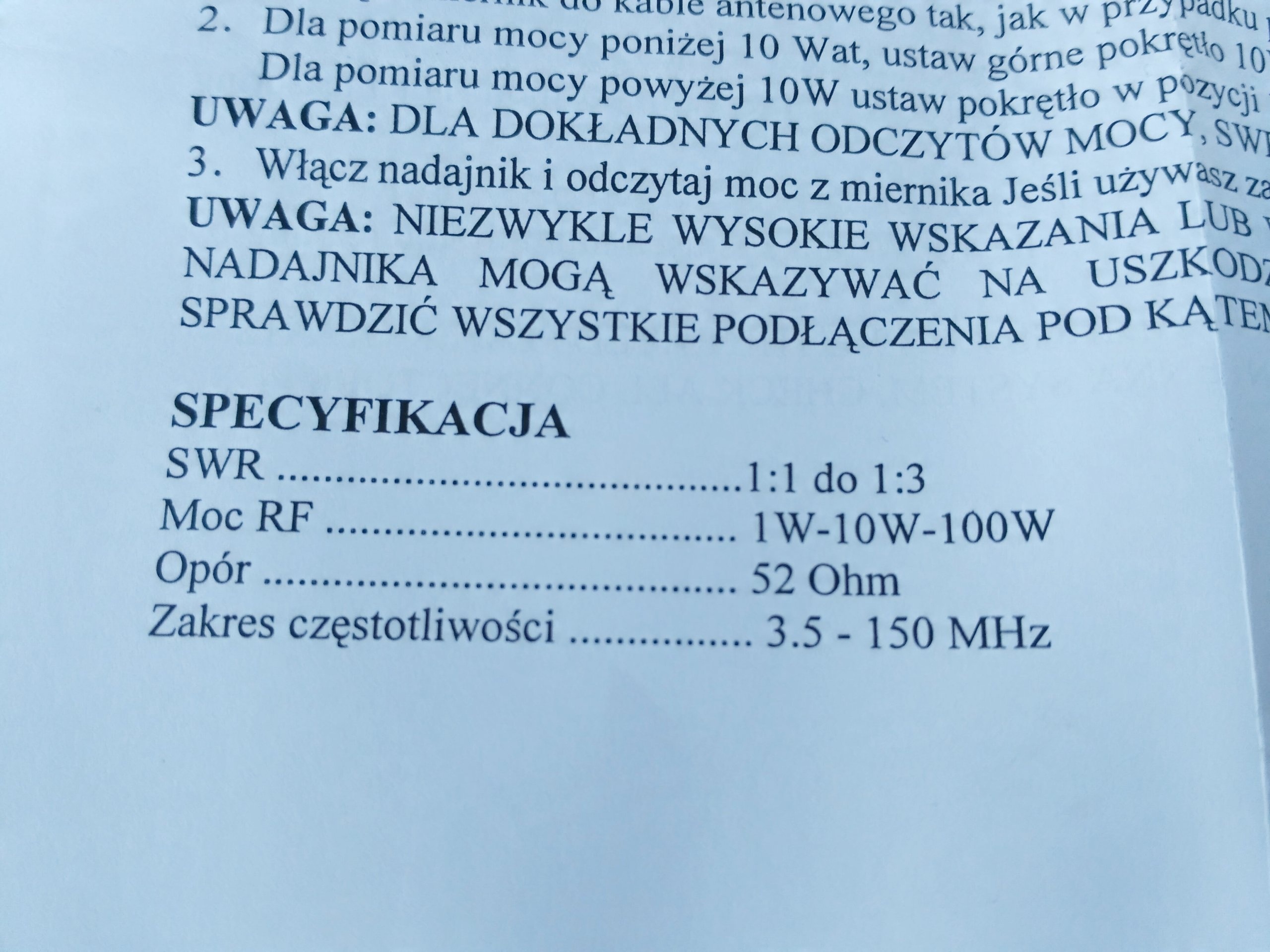 - Диапазон измерения 26 МГц – 30 МГц