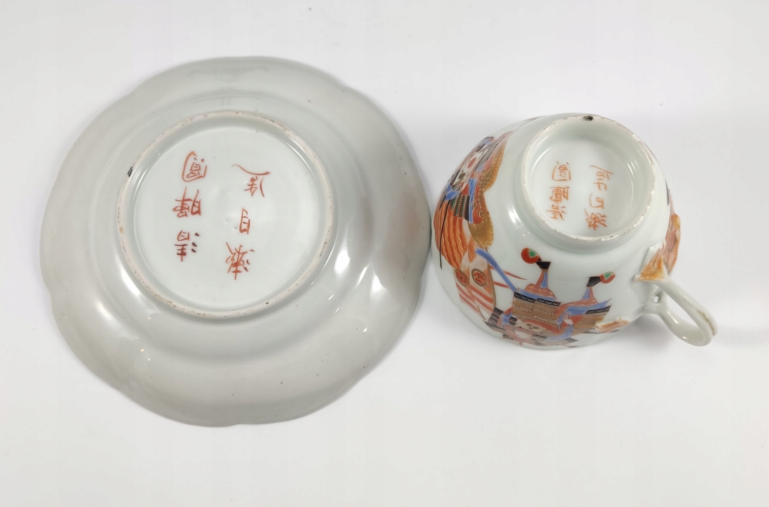 мы предлагаем уникальный набор - чашка с блюдцей из японского фарфорового кутани с конца девятнадцатого века, от правления императора Мэйдзи. Это настоящий фрагмент истории, в которой была очарована история старых японских воинов. Каждая деталь украшения является свидетельством мастерства художника, который с точностью и страстью дал дух эпохи.