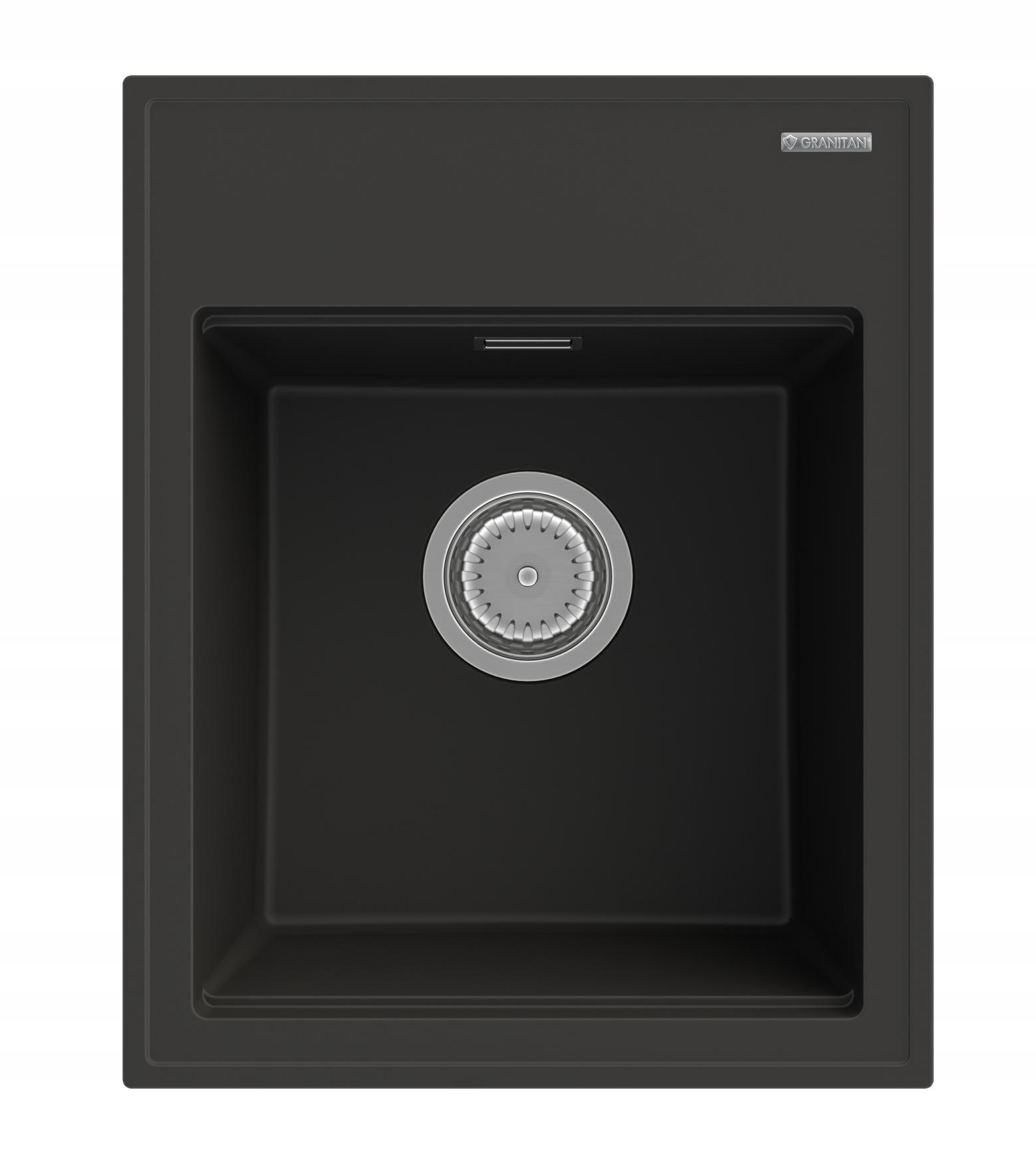 МАКОВИНА из ЧЕРНОГО ГРАНИТА С ХРОМИРОВАННЫМ СИФОНОМ