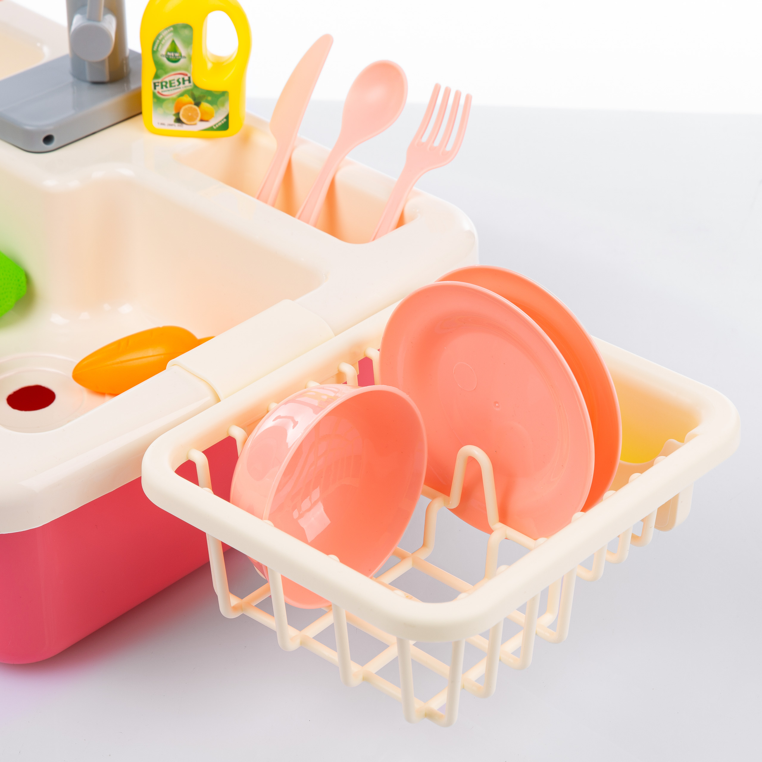 Раковина с настоящим краном с проточной водой и аксессуарами. Ребенок может мыть посуду, игрушка развивает воображение, учит ответственности и порядку.