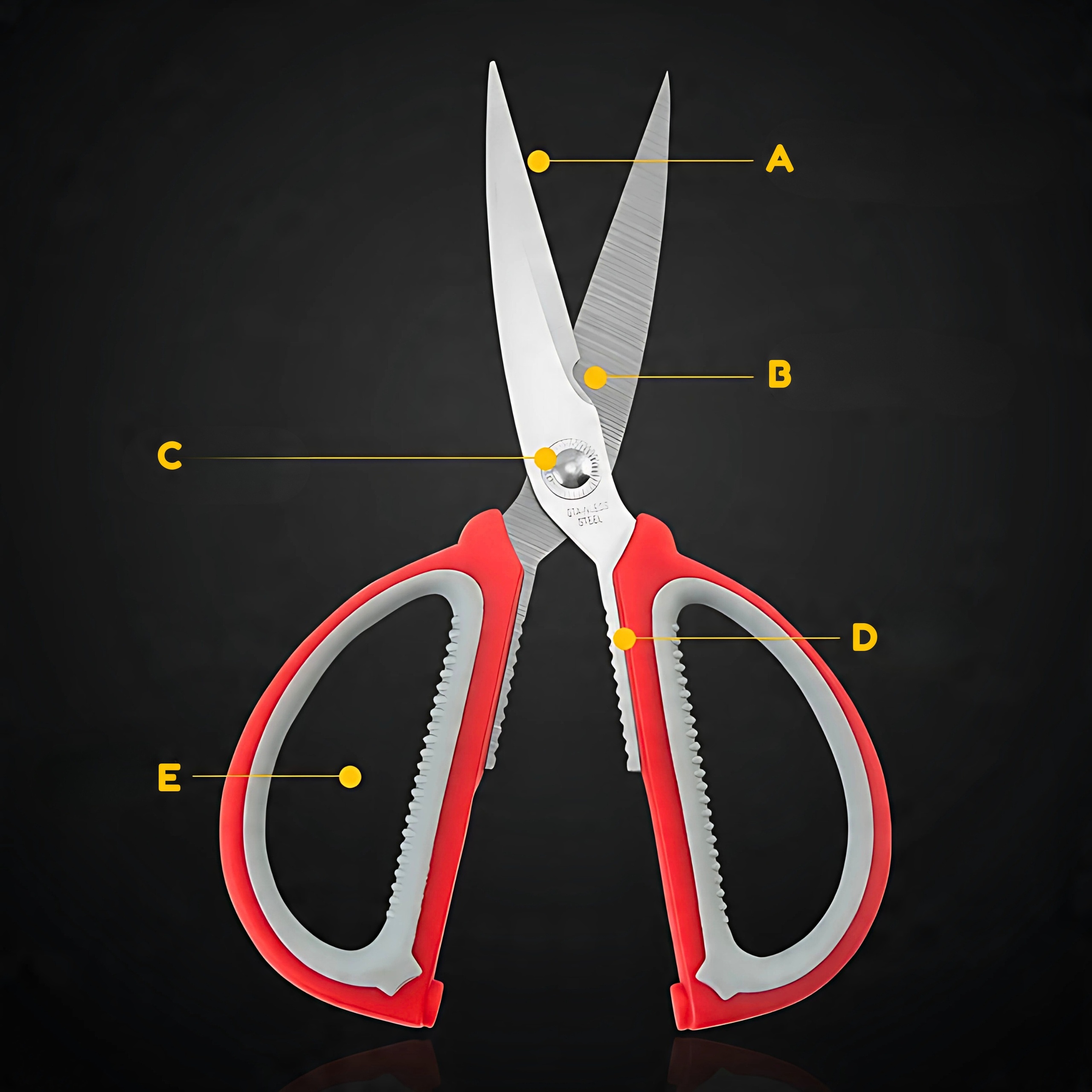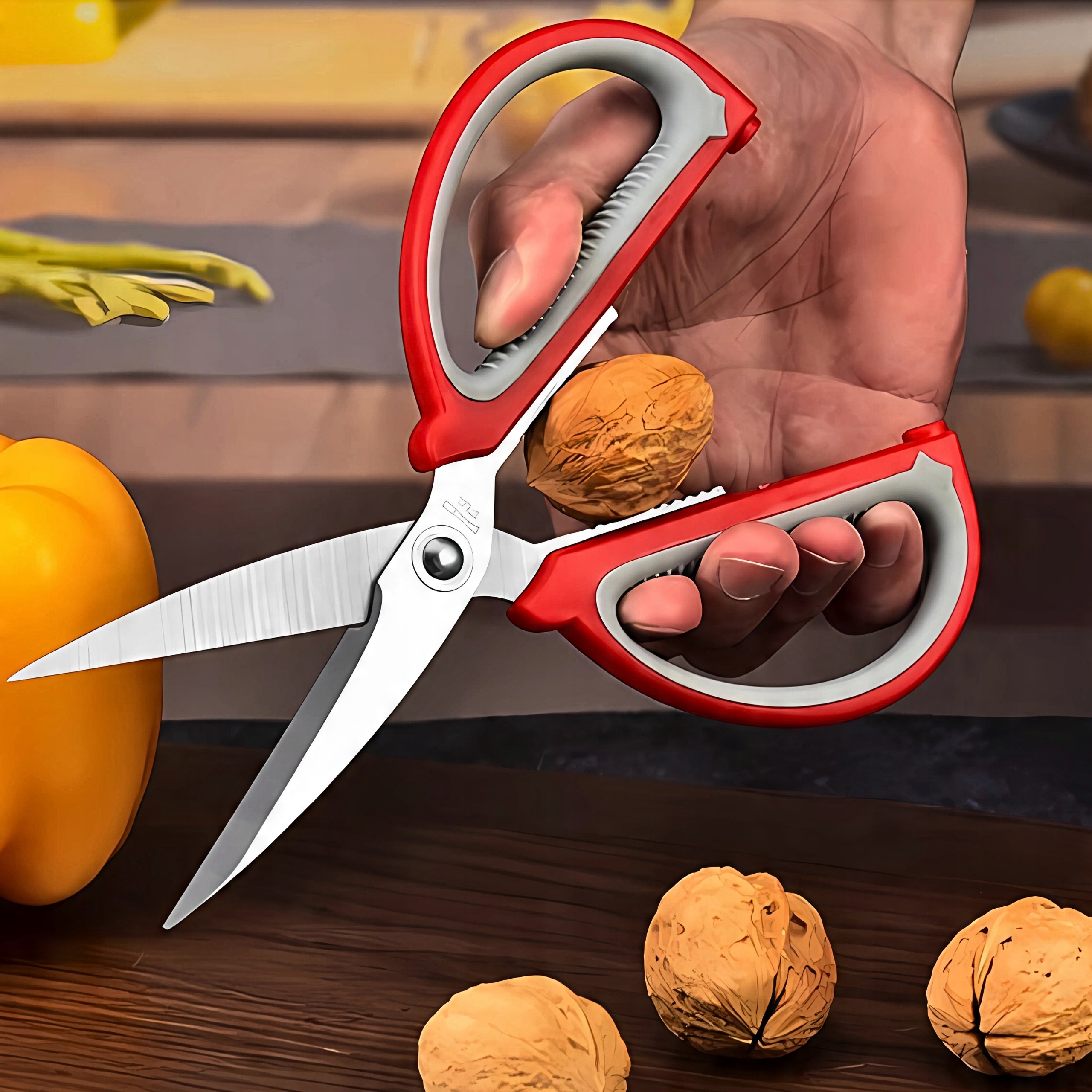 Наши ножницы из нержавеющей стали являются идеальным инструментом для ручки птицы, мяса, рыбы, овощей и даже расщепления орехов и открывающихся бутылок.