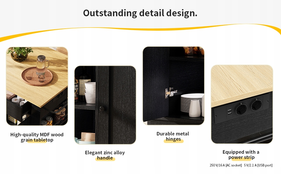- Оснащены электрическими розетками: этот кухонный остров имеет компактную конструкцию с электрическими розетками, расположенными со стороны, так что вы можете легко подключить различные кухонные приборы, такие как индукционная печь, кофеварка или небольшой холодильник.