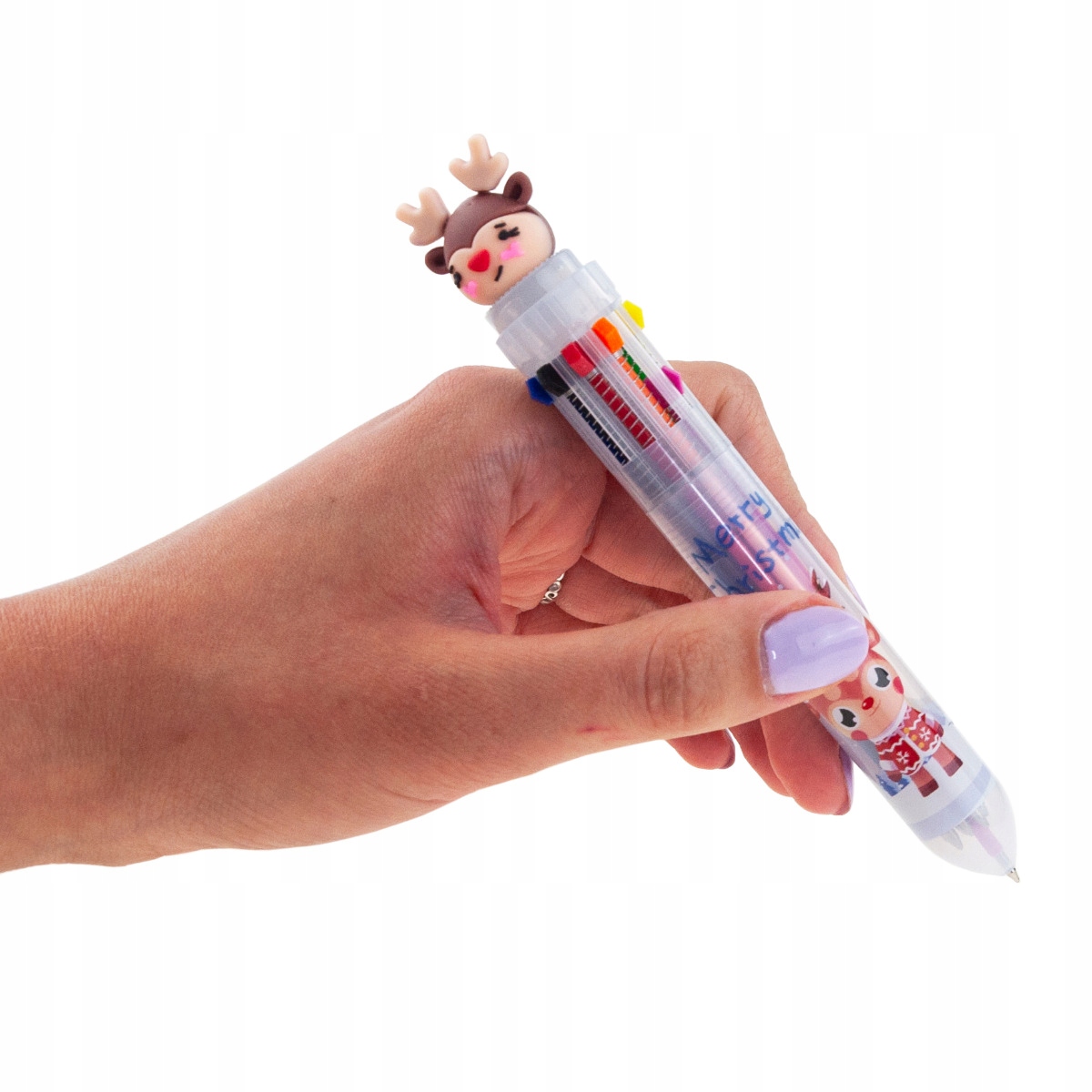 ШАРИКОВАЯ РУЧКА 10В1 РОЖДЕСТВЕНСКИЙ ОЛЕНЬ ПОДАРОК САНТЫ МНОГОЦВЕТНАЯ