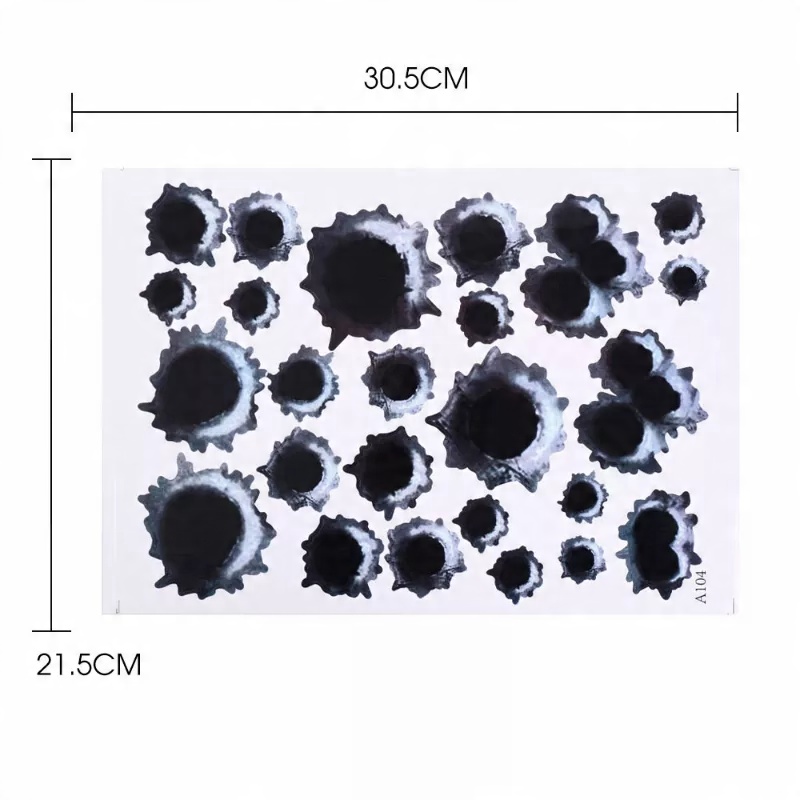 На этом аукционе вы покупаете один лист наклеек с пулевыми отверстиями в различных формах - обозначение A103