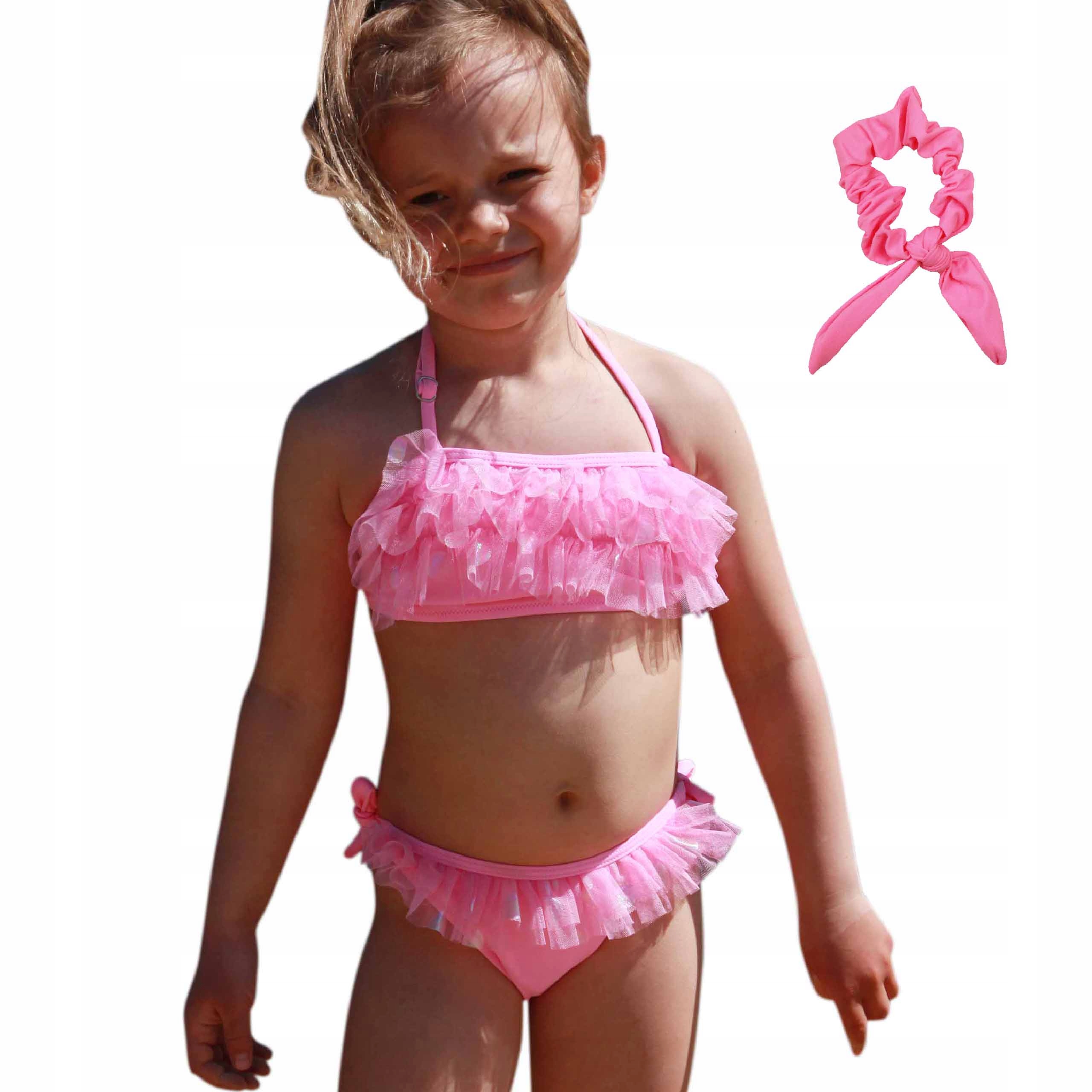 Красивый розовый наряд. Бюстгальтер и трусики украшены привлекательной рюшей из тюля с красивым блестящим узором в горошек. Повязка для волос. Верх костюма имеет регулируемый ремень и завязки сзади и на трусиках, поэтому его можно регулировать индивидуально. Все это просто КУЧА :)!