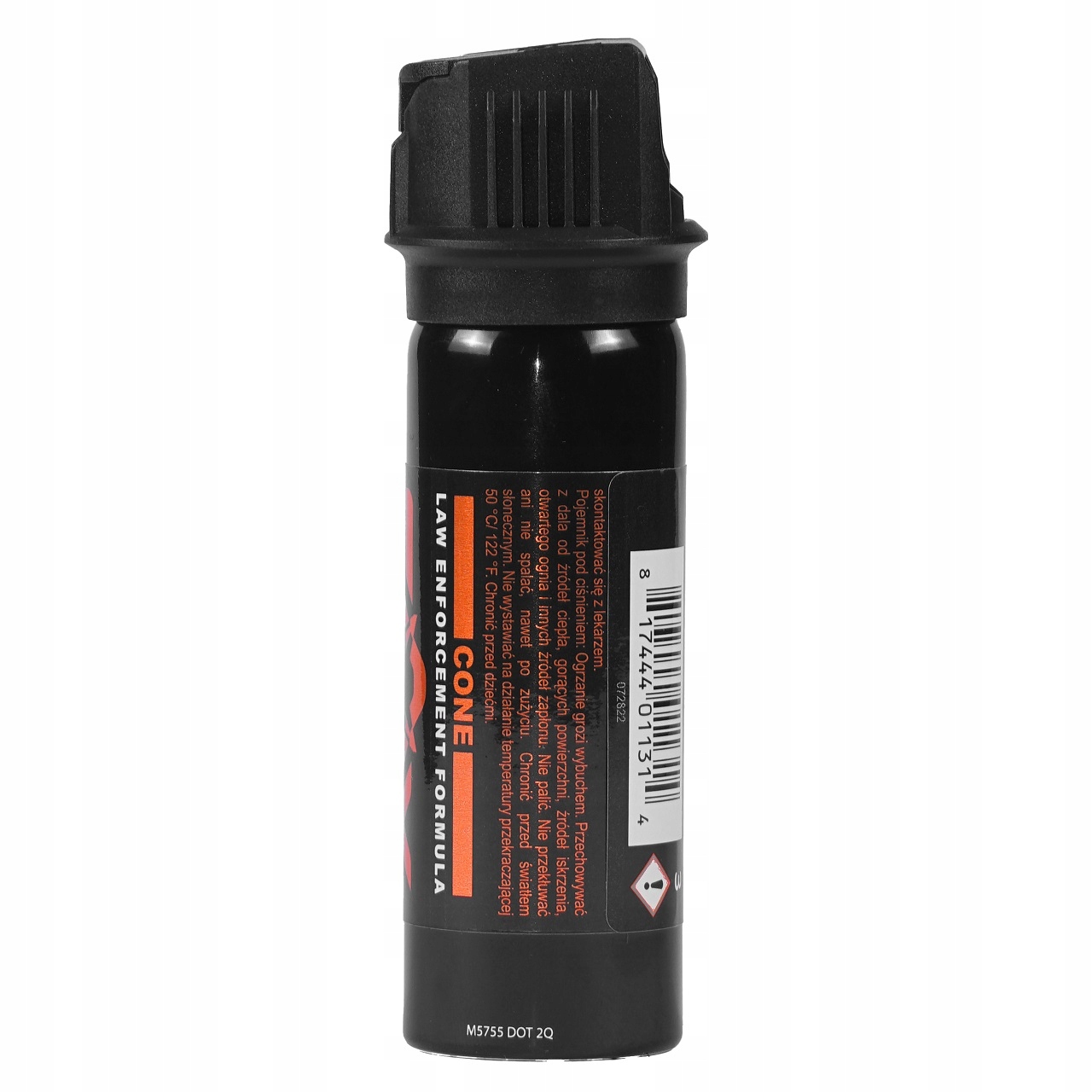 Перепный газ с емкостью 43 мл распыляется в виде тумана. Это также выведено из строя людей под воздействием алкоголя и наркотиков. У него есть замок с переворотом, который защищает от случайного газа и ультрафиолетового красителя, что может облегчить последующую идентификацию злоумышленника.