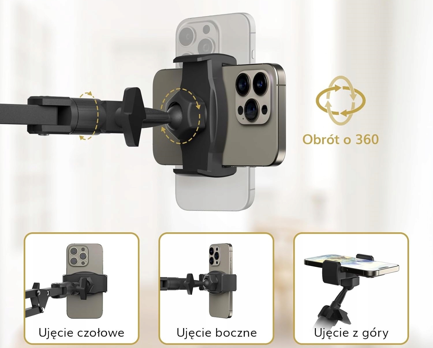 Благодаря универсальному кольцу в зажиме для телефона вы можете легко расположить смартфон под любым углом, всегда гарантируя идеальный снимок. Стержень подставки, удлиненный на 10 см, повышает гибкость и расширяет возможности позиционирования.