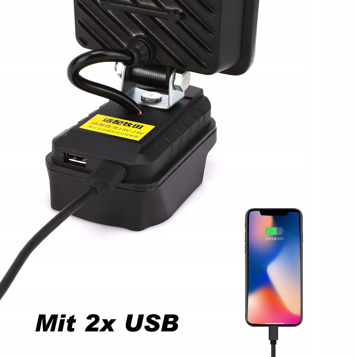 Практическая функция зарядки. Наша рабочая лампа имеет 2* выхода USB-A на задней панели. С помощью аккумуляторов Makita (не входят в комплект) вы можете заряжать свой мобильный телефон и другие электронные устройства, что очень удобно и практично на открытом воздухе!
