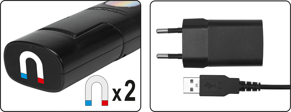 - Поворотный корпус позволяет наклонять лампу под любым углом. Благодаря этой функции, а также двум магнитам и вращающемуся крючку его можно легко и гибко прикрепить. Это позволяет обеспечить оптимальное освещение нужного пространства, оставляя руки свободными.
