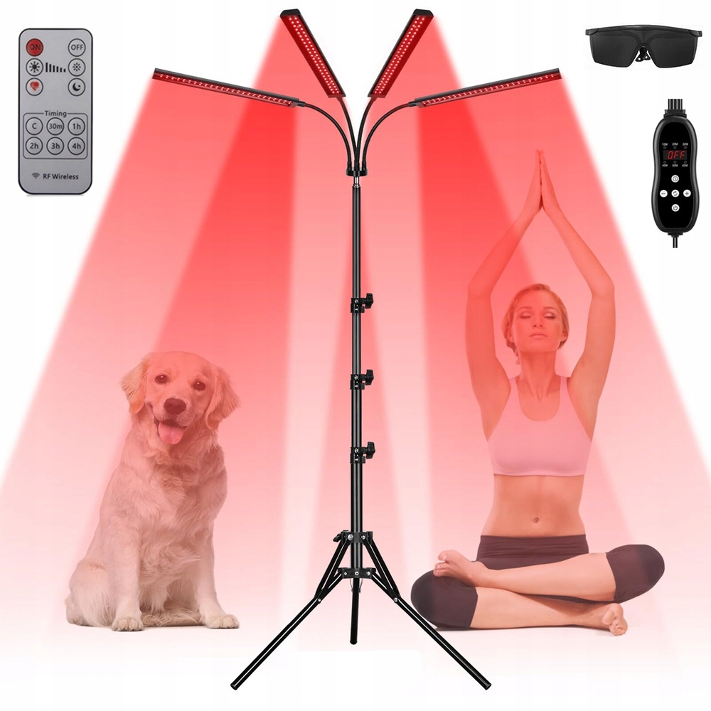 🏡 Lamp для терапии с красным светом 660 нм + 850 нм с регулируемым штативом, гибкой шеей гуси и таймер · ›
