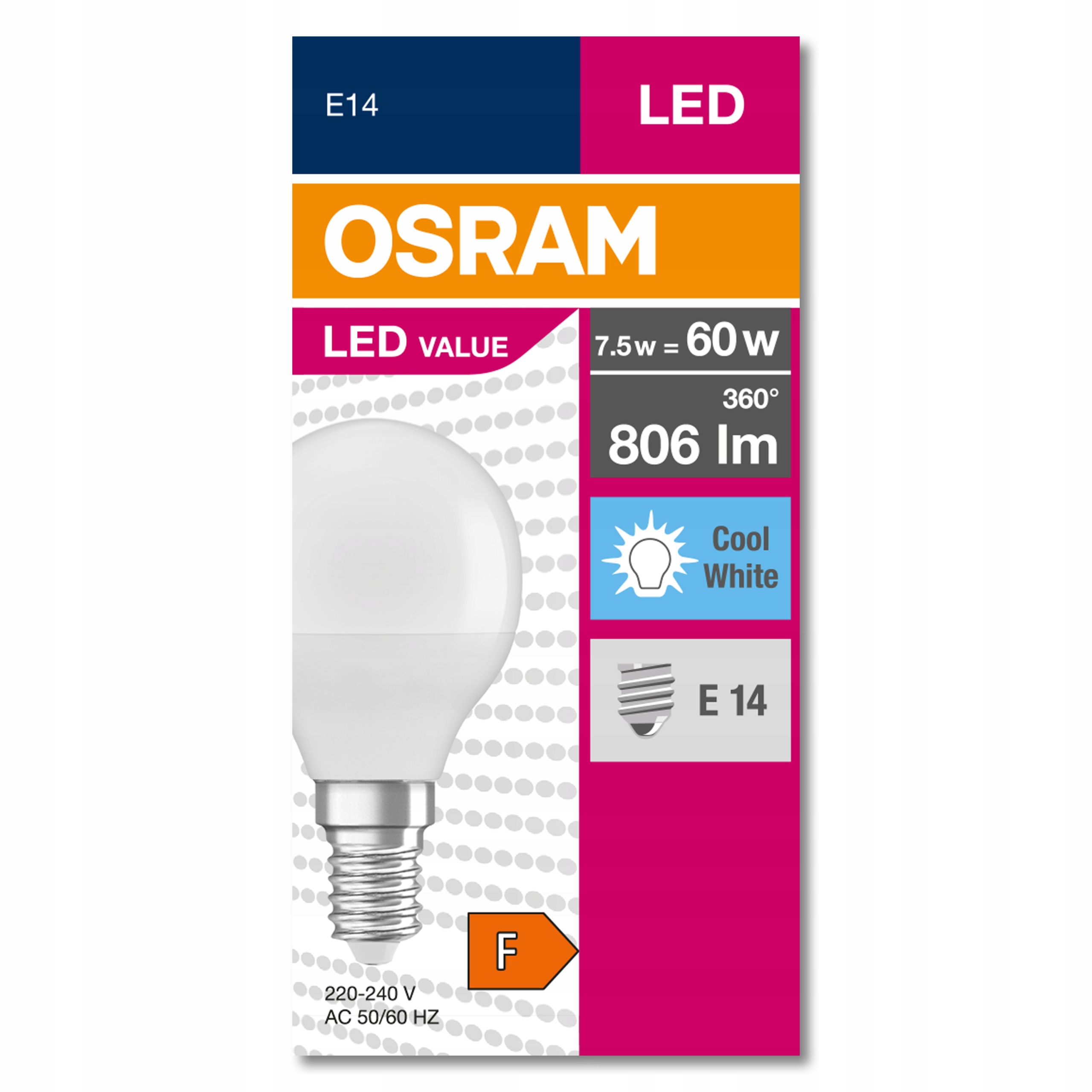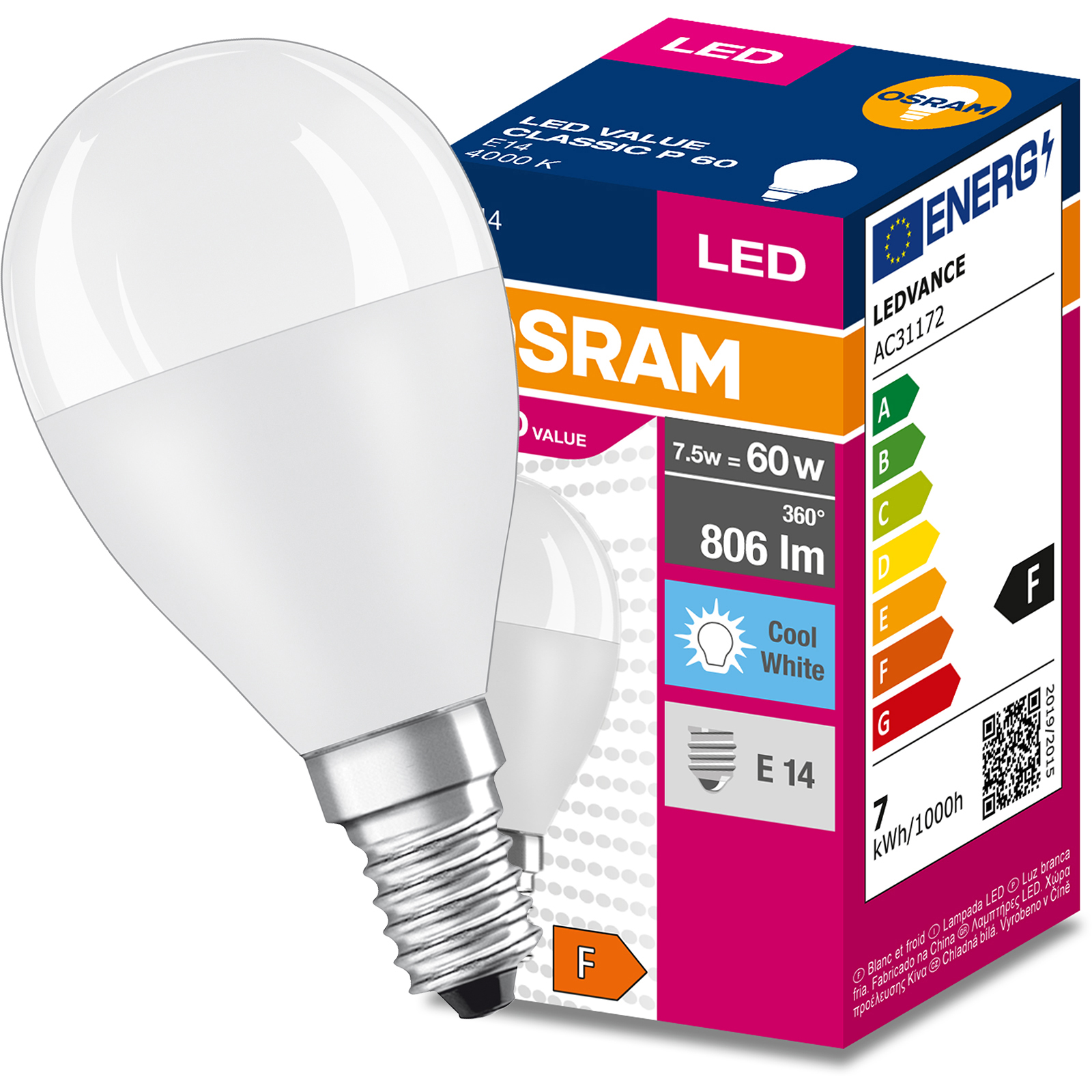 Светодиодная шариковая лампа E14 7,5 Вт = 60 Вт 806 лм 4000 К OSRAM – НЕЙТРАЛЬНЫЙ ЦВЕТ СВЕТА