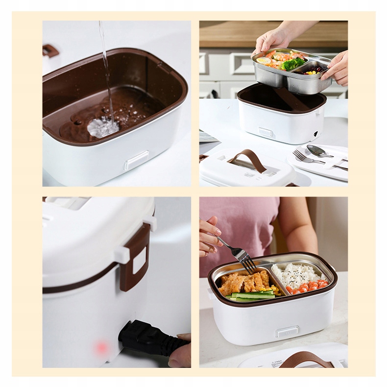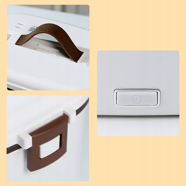 Надежный и надежный. эстетично выполнено Устройство оснащено нагревательным элементом PTC, позволяющим разогреть пищу до 70°C за 20 минут. Отопитель плотно закрывается защелками, перекрывающими доступ воздуха. Благодаря этому еда дольше остается свежей. Идеально подходит для работы, учебы, путешествий, работы в саду и кемпинга.