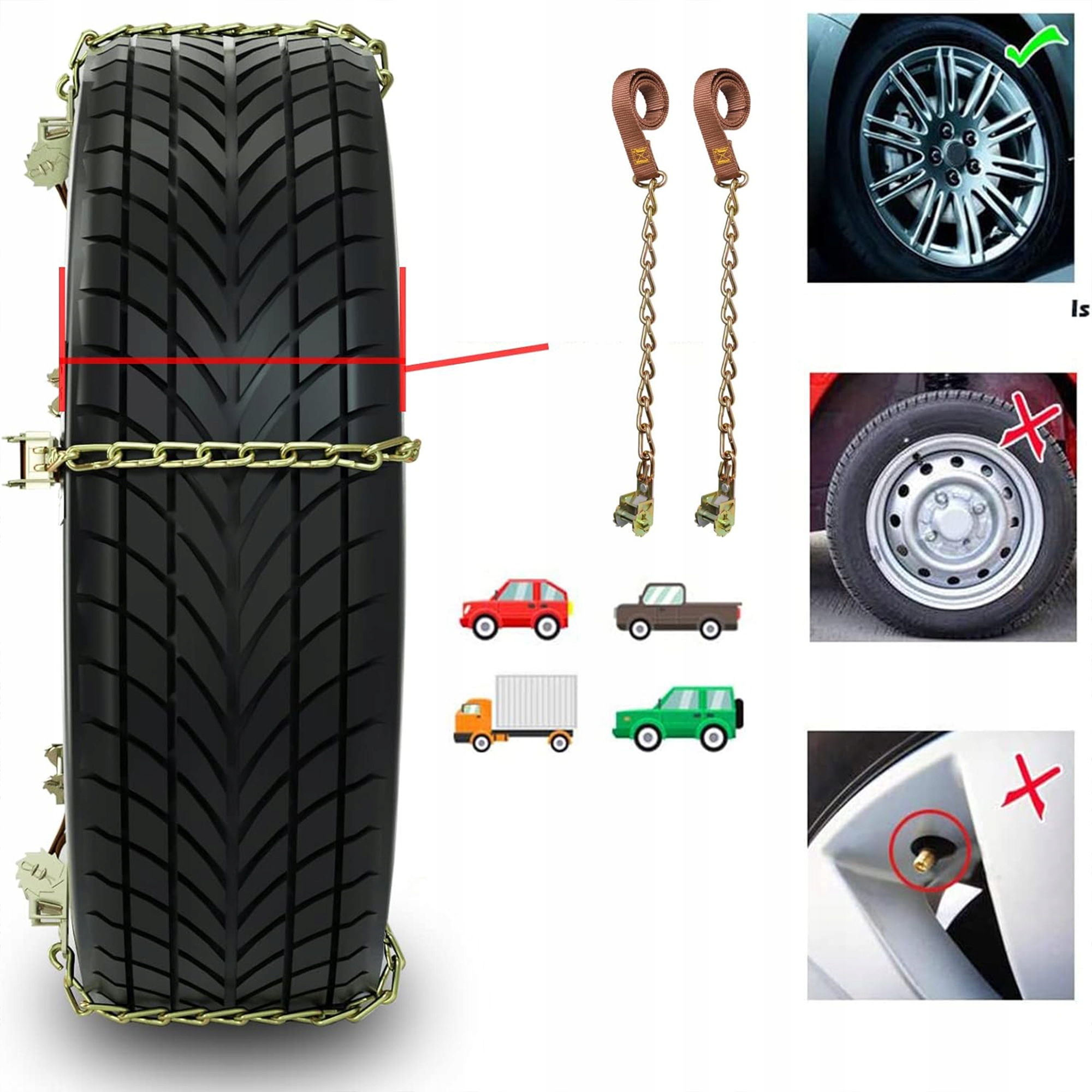 ⛄Универсальный размер:Цепи противоскольжения подходят для грузовых автомобилей, внедорожников, фургонов,легковых автомобилей и других транспортных средств общего пользования, подходят для всех моделей с шириной шин 165–305 мм. p>