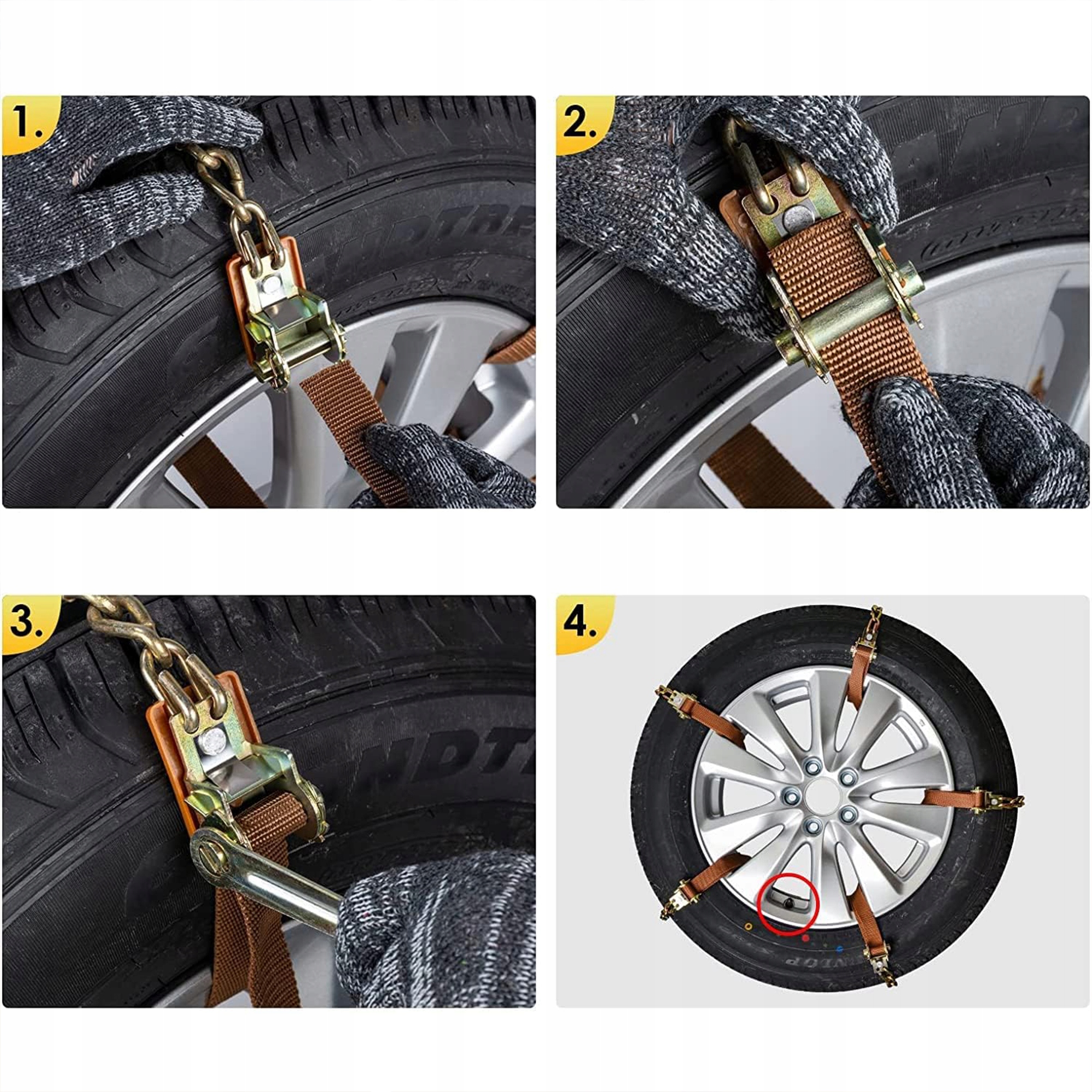 ⛄Высококачественный материал: Цепь противоскольжения изготовлена из высококачественной марганцовистой стали, оснащена нейлоновыми ремнями, которые устойчивы к давлению и износу и выдерживают низкие температуры до -50 градусов Цельсия.
