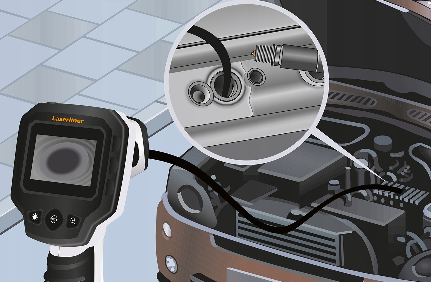 Профессиональная система управления видео обеспечивает визуальное управление в твердое части -переоборудование, например, в трубопроводах, настенных нишах и транспортных средствах двигателя. Пользователь имеет простую пространственную ориентацию путем интуитивного вращения базового блока. Благодаря эффективному освещению светодиодных объектов, вы можете сфотографироваться даже в плохих условиях. Обеспечивает реалистичное воспроизведение благодаря реалистичному цветовому воспроизведению. Благодаря функции Zoom, вы можете четко запечатлеть детали. Эргономичное устройство хорошо находится в руке и также удобно использовать во время долгой работы.