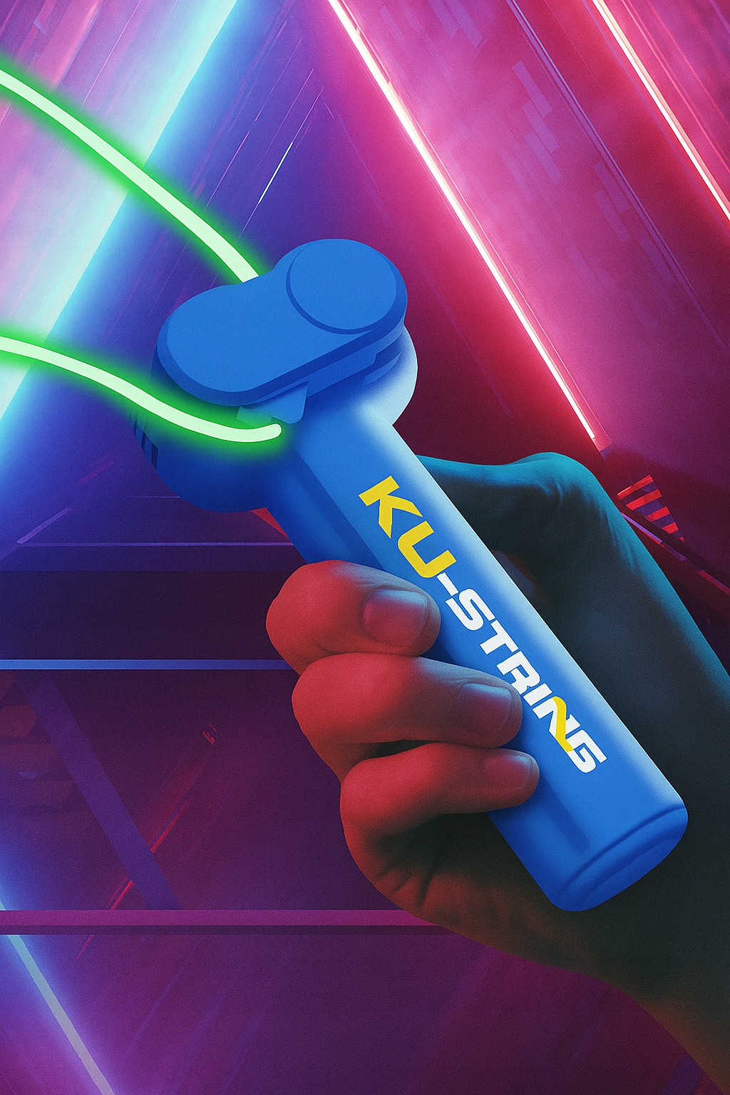 KU-STRING — это инновационная легкая веревочная пусковая установка, которая вращается в воздухе, создавая иллюзию парящей светящейся струны.