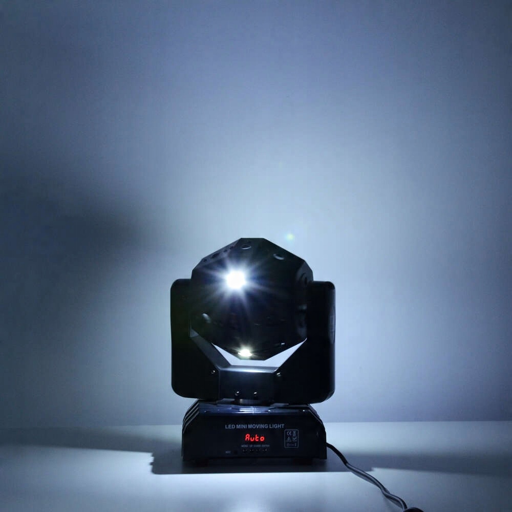 - Стробоскоп: 4x15 Вт COB LED — чрезвычайно быстрые и мощные вспышки, добавляющие динамики каждому событию.