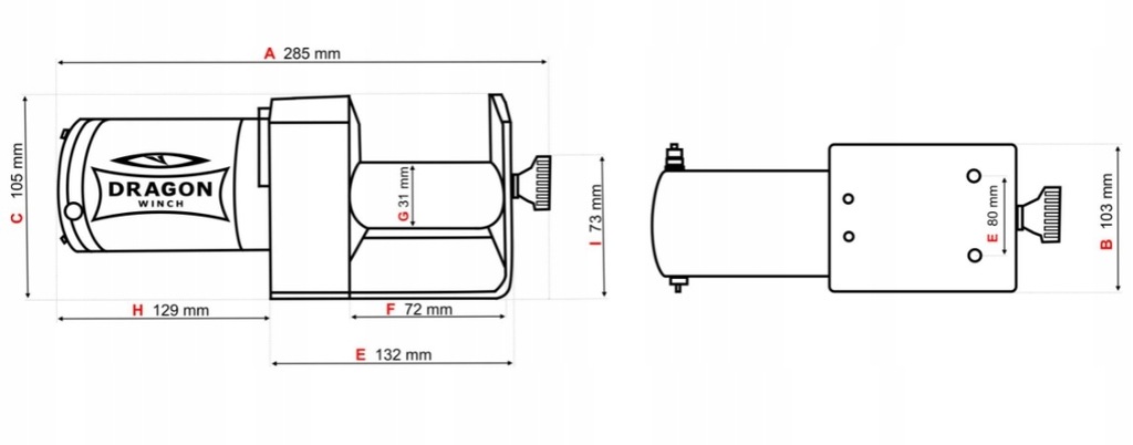 - Размеры лебедки (ДхШхВ): 285 мм х 103 мм х 105 мм