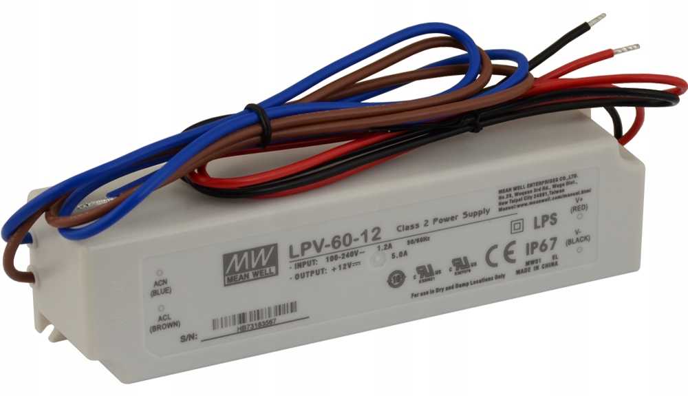 Блок питания для светодиодов MEAN WELL LPV-60-12, 60 Вт, 12 В