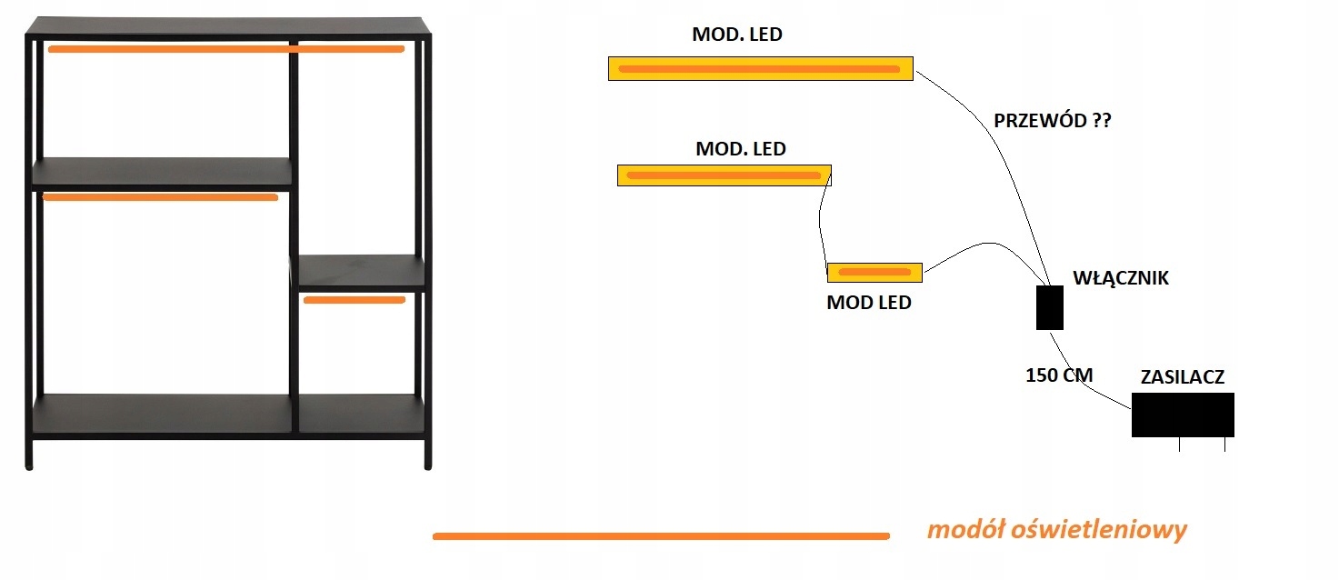 НАБОР СОСТОИТ ИЗ 3 МОДУЛЕЙ ПО 60 СМ КАЖДЫЙ. С КАБЕЛЯМИ ДЛЯ ПОСЛЕДОВАТЕЛЬНОГО СОЕДИНЕНИЯ. ДАННОЕ РЕШЕНИЕ ПОЗВОЛЯЕТ ЛЮБОЕ РАСПОЛОЖЕНИЕ ОСВЕЩЕНИЯ.