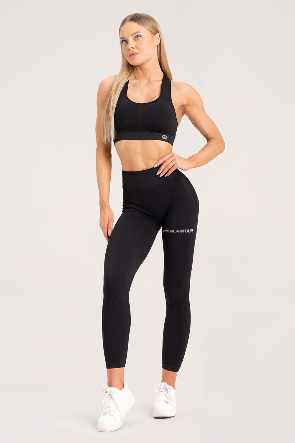 Леггингс -тренажерный зал гламур, толчок глубоко черный